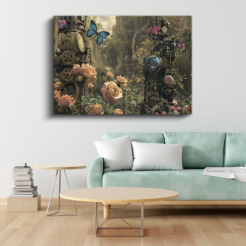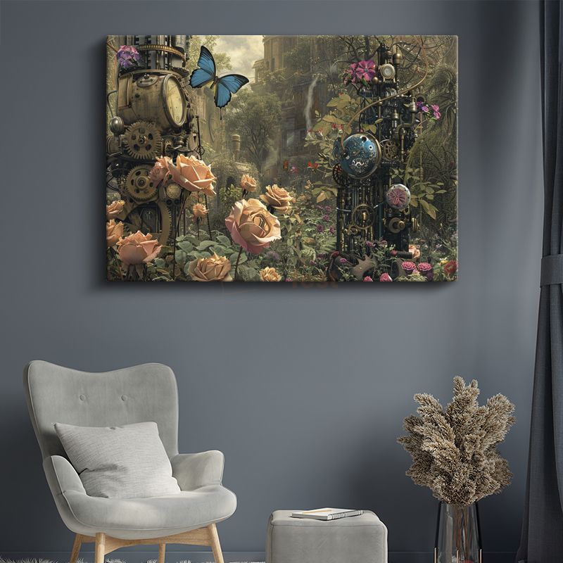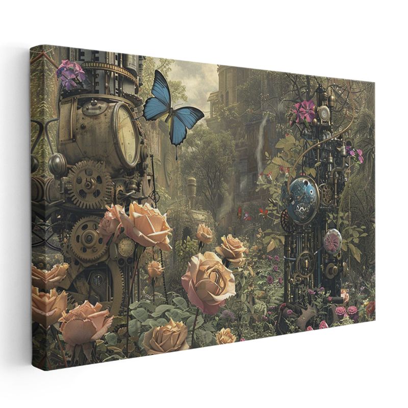 Mekanik Bahçe - Çarklar ve Kelebekler Dansı Kanvas Tablo