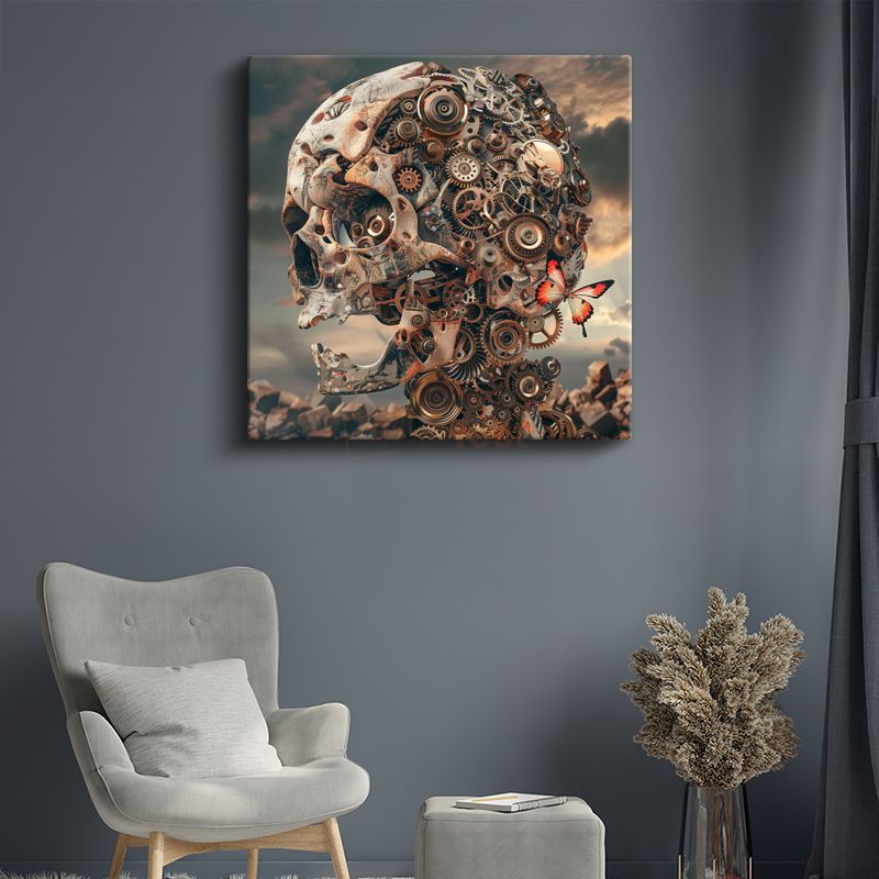 Mekanik Ölüm - Çarklardan Oluşan Kafatası Kanvas Tablo
