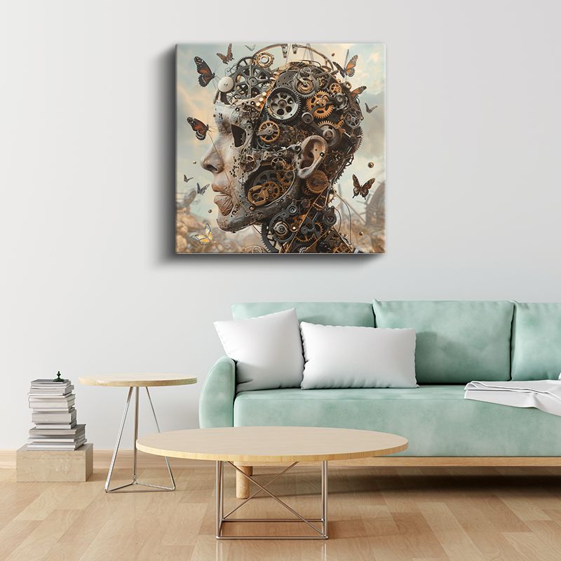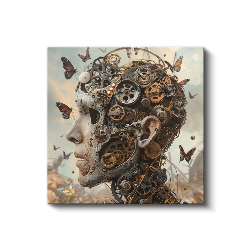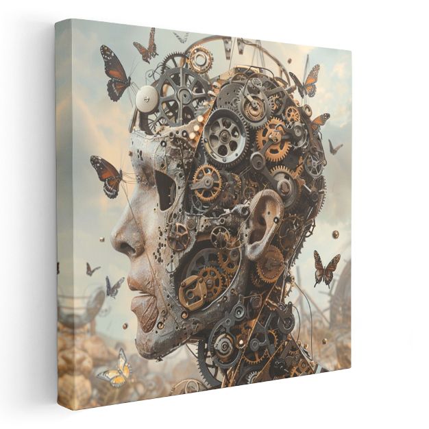 Mekanik Zihin - Kelebeklerle Dans Eden Çarklar Kanvas Tablo