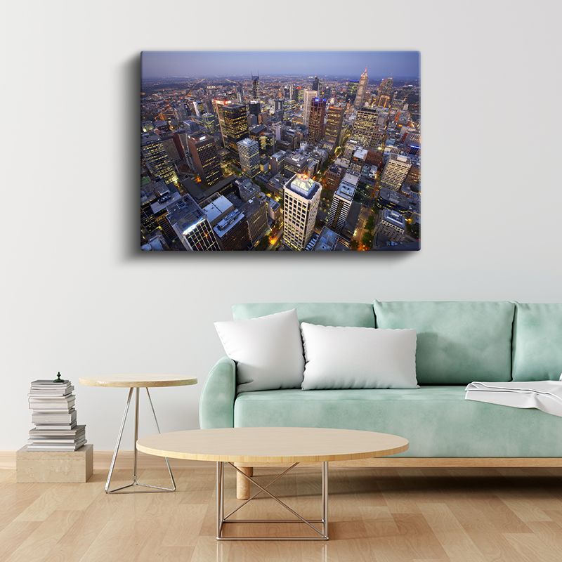 Melbourne Kuşbakışı - Gece Şehir Işıkları Kanvas Tablo