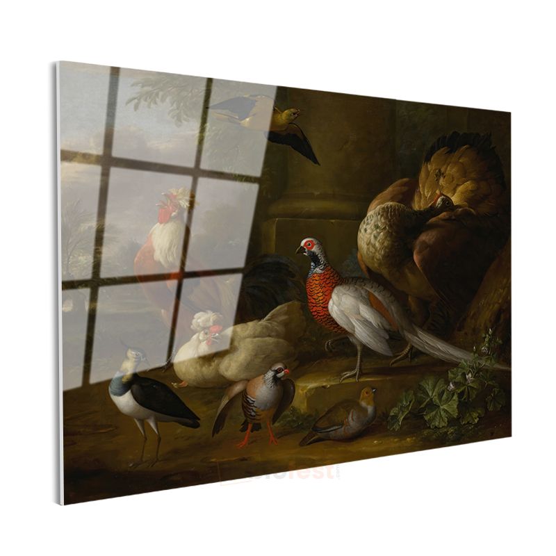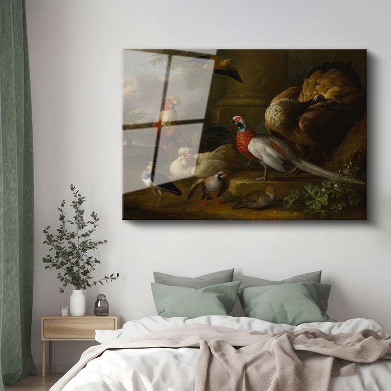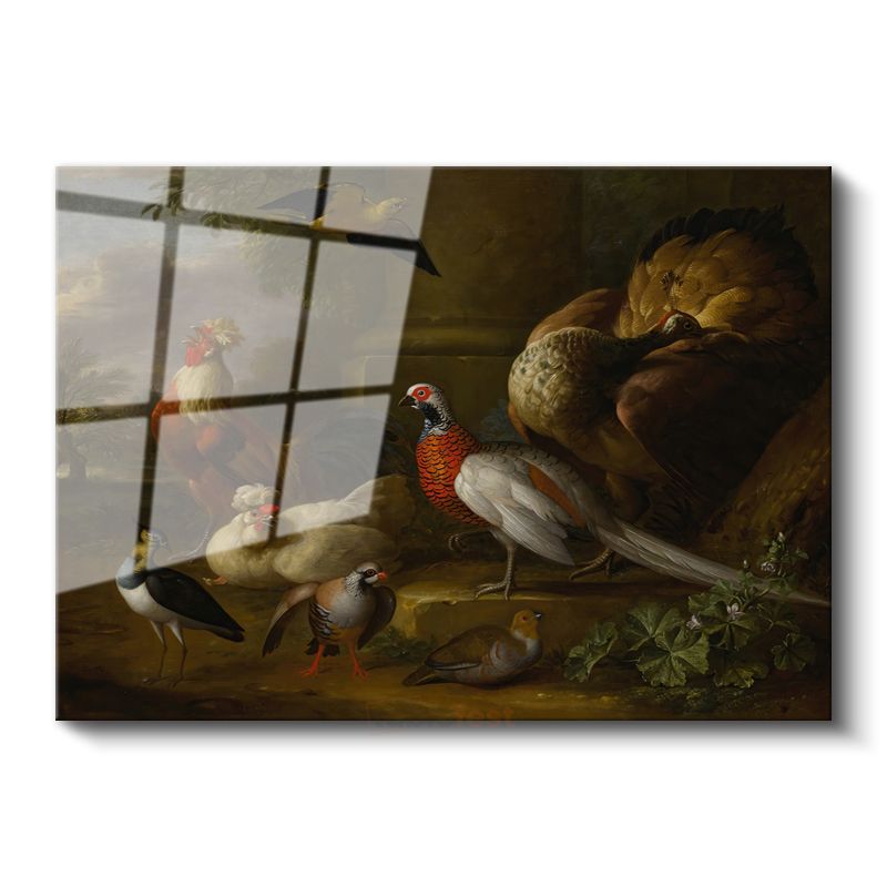 Melchior d'Hondecoeter - Avluda Kümes Hayvanları Cam Tablo
