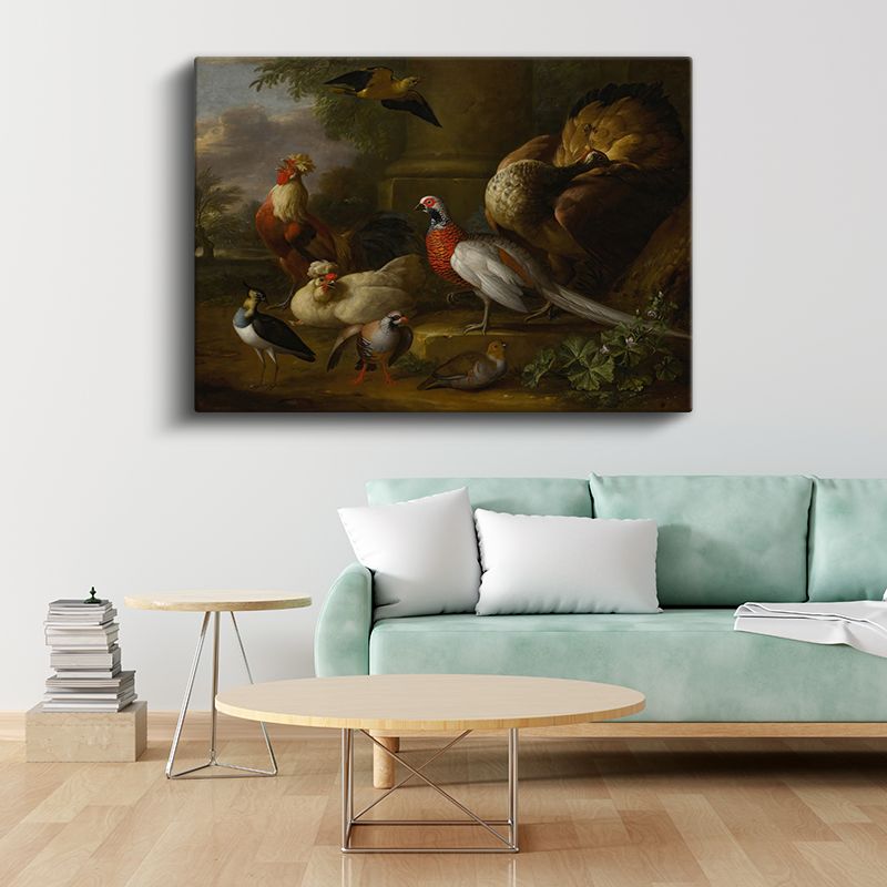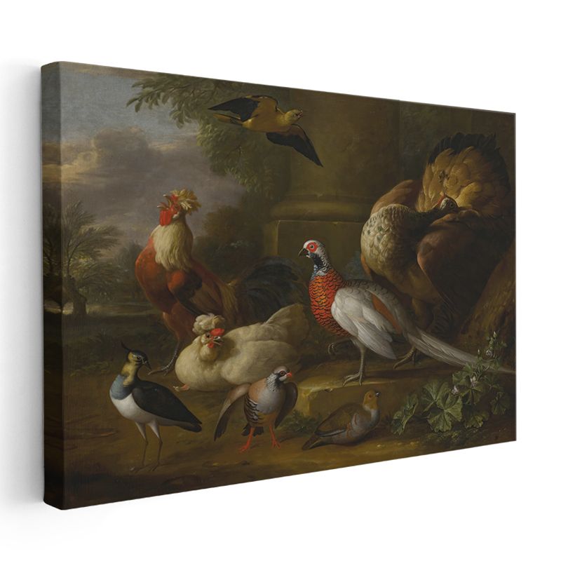 Melchior d'Hondecoeter - Avluda Kümes Hayvanları Kanvas Tablo