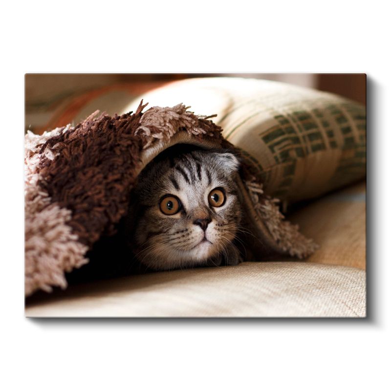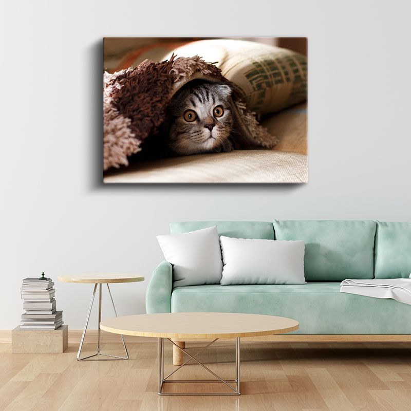 Meraklı Bakış - Battaniye Altındaki Kedi Yavrusu Kanvas Tablo