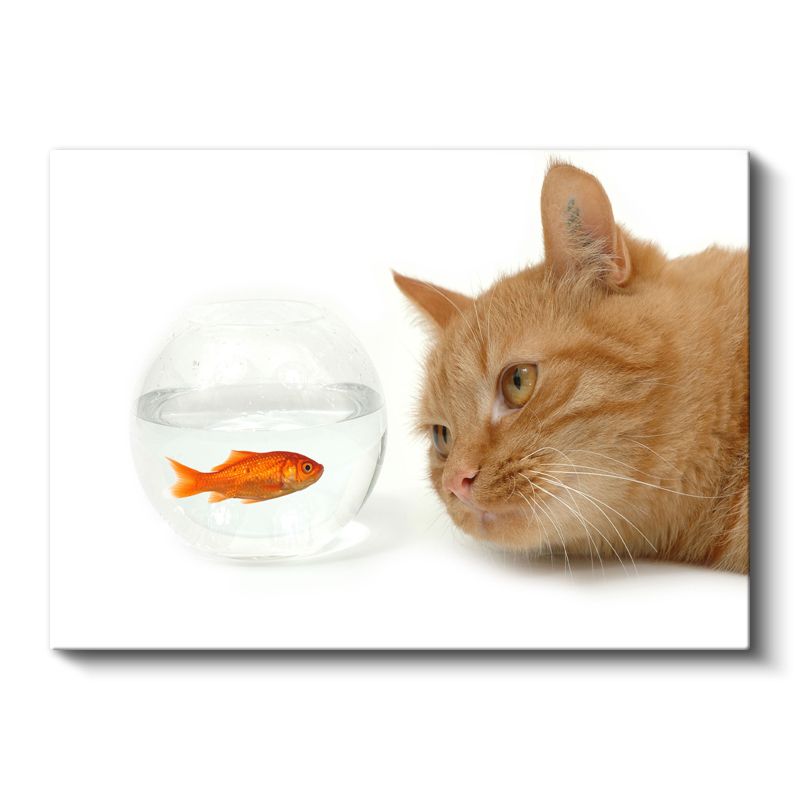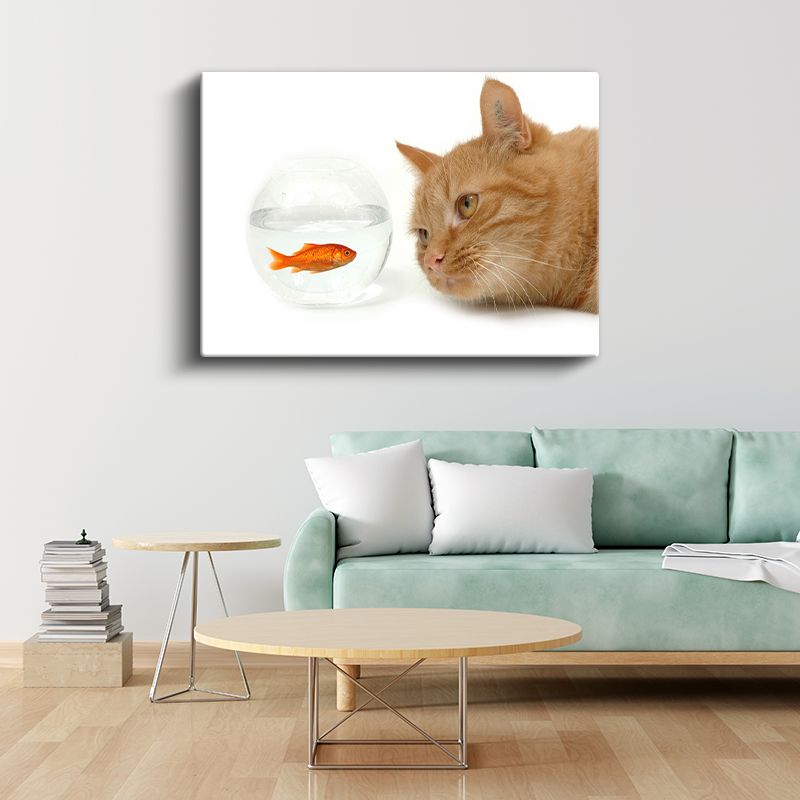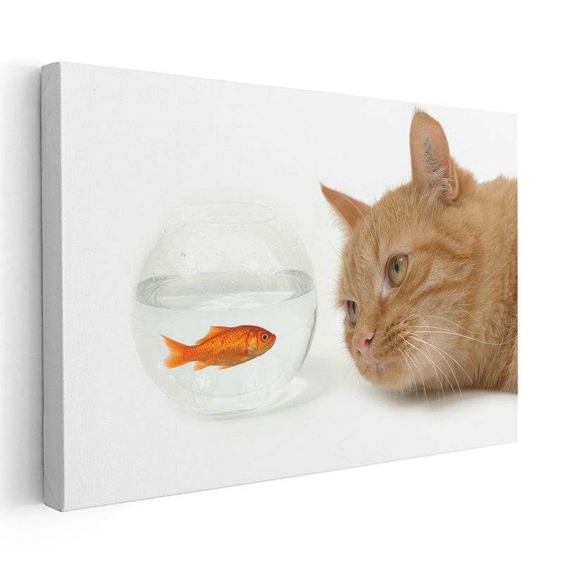 Meraklı Kedi - Akvaryum Balığını İzleyen Turuncu Dost Kanvas Tablo