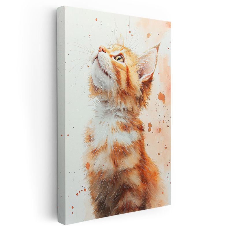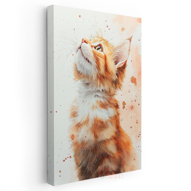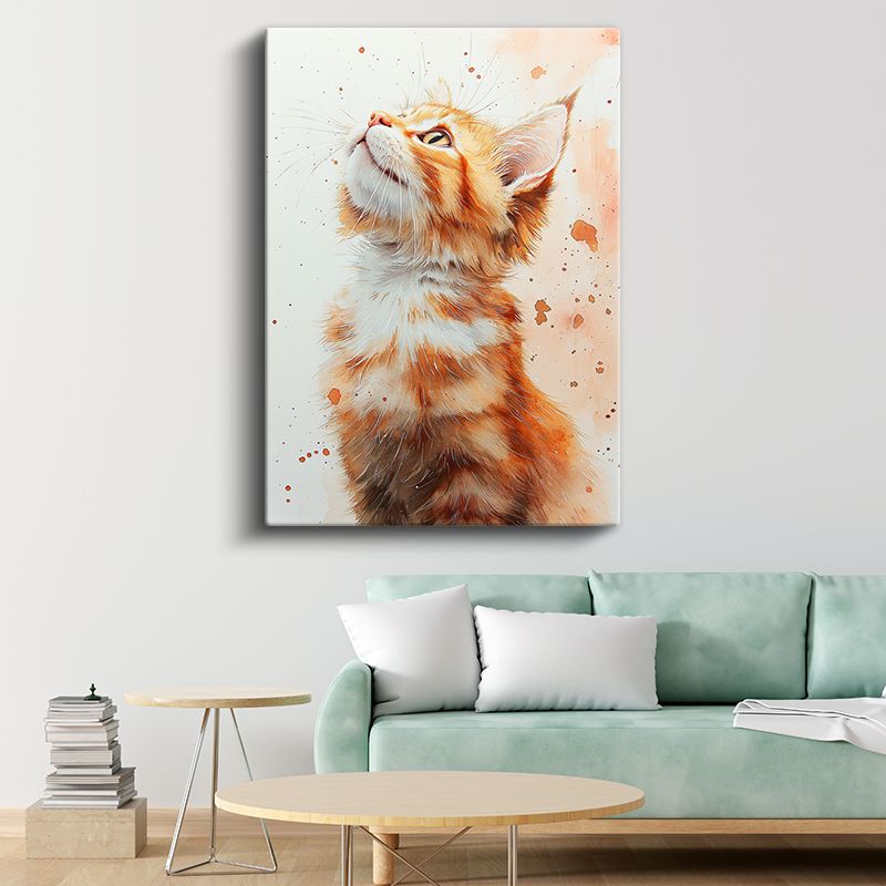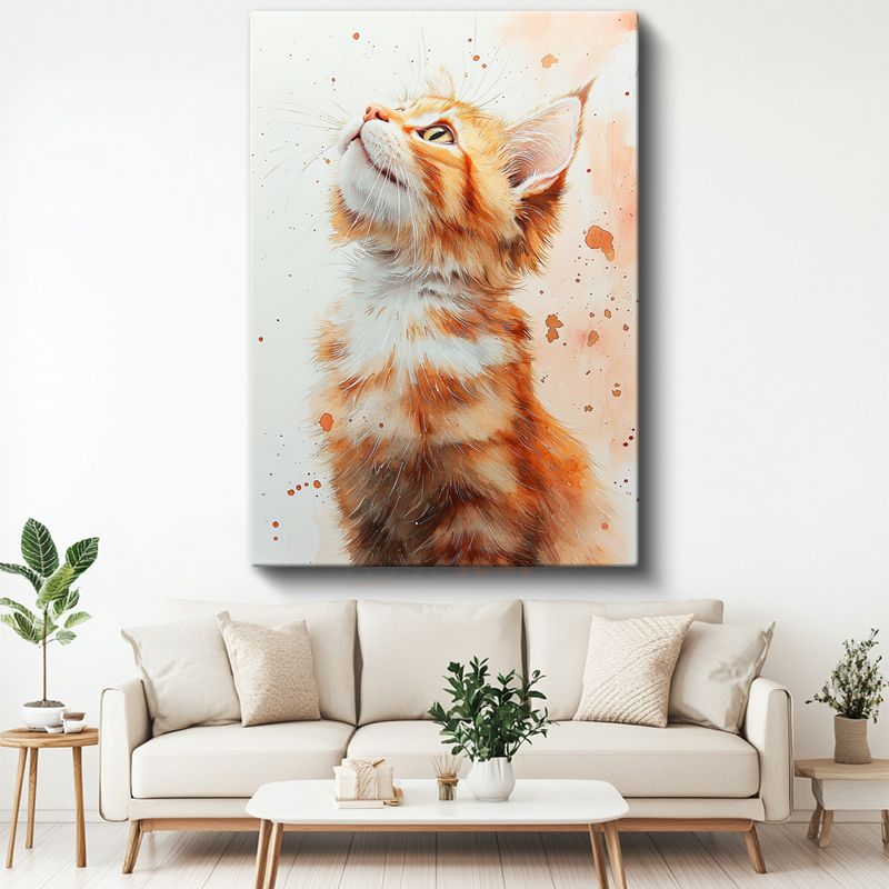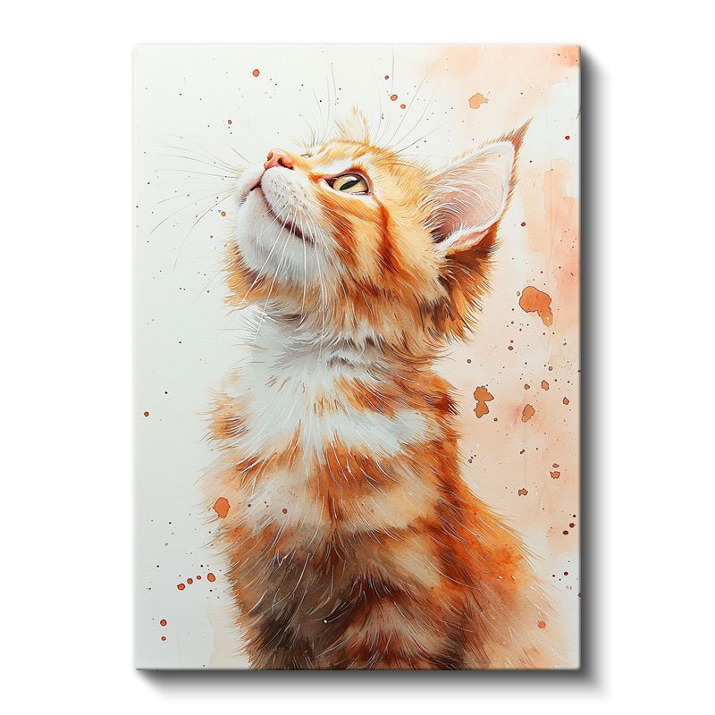 Meraklı Yavru - Suluboya Tarzında Turuncu Kedi Kanvas Tablo
