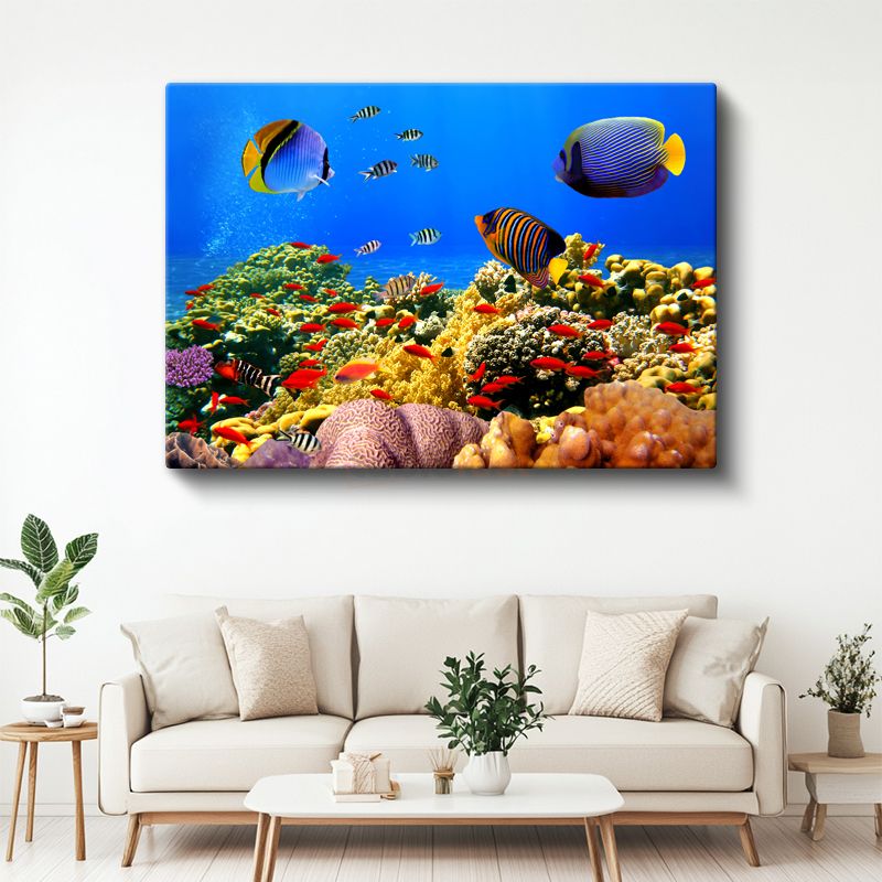 Mercan Cenneti - Renkli Balıkların Dansı Kanvas Tablo