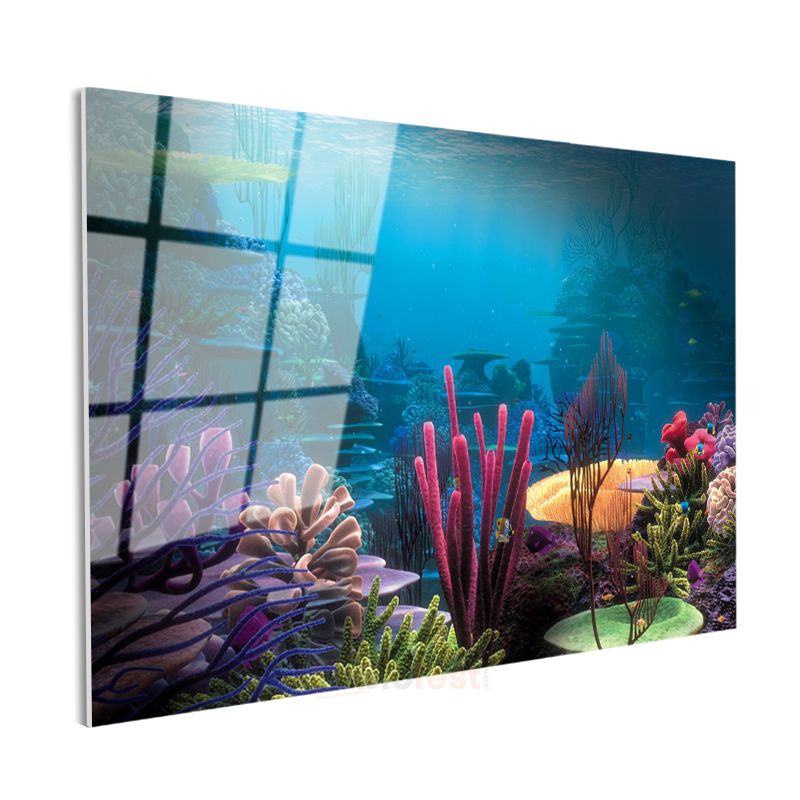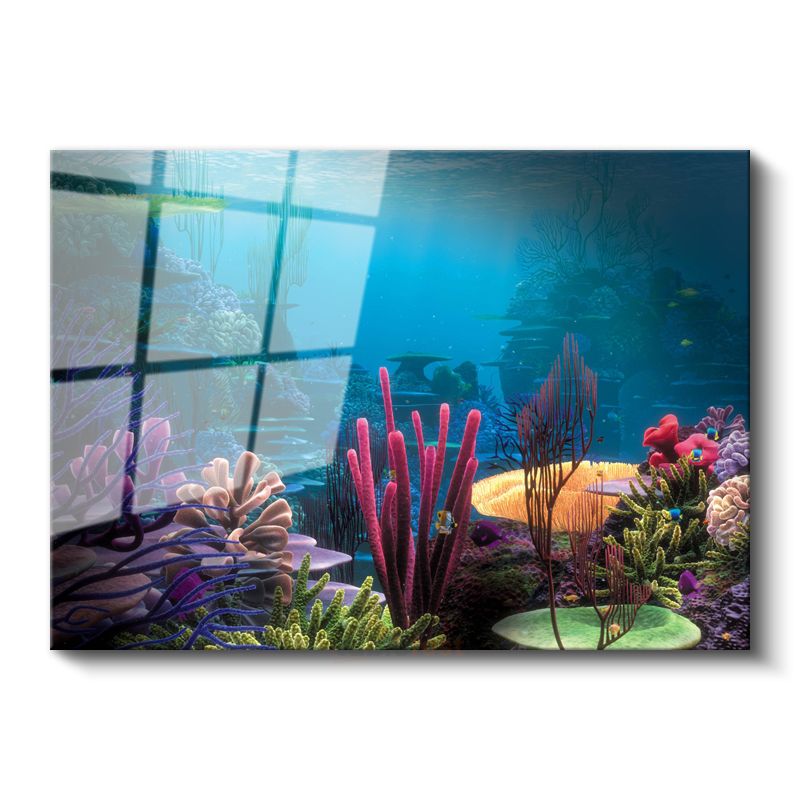 Mercan Resifi - Renkli Deniz Altı Yaşamı Cam Tablo