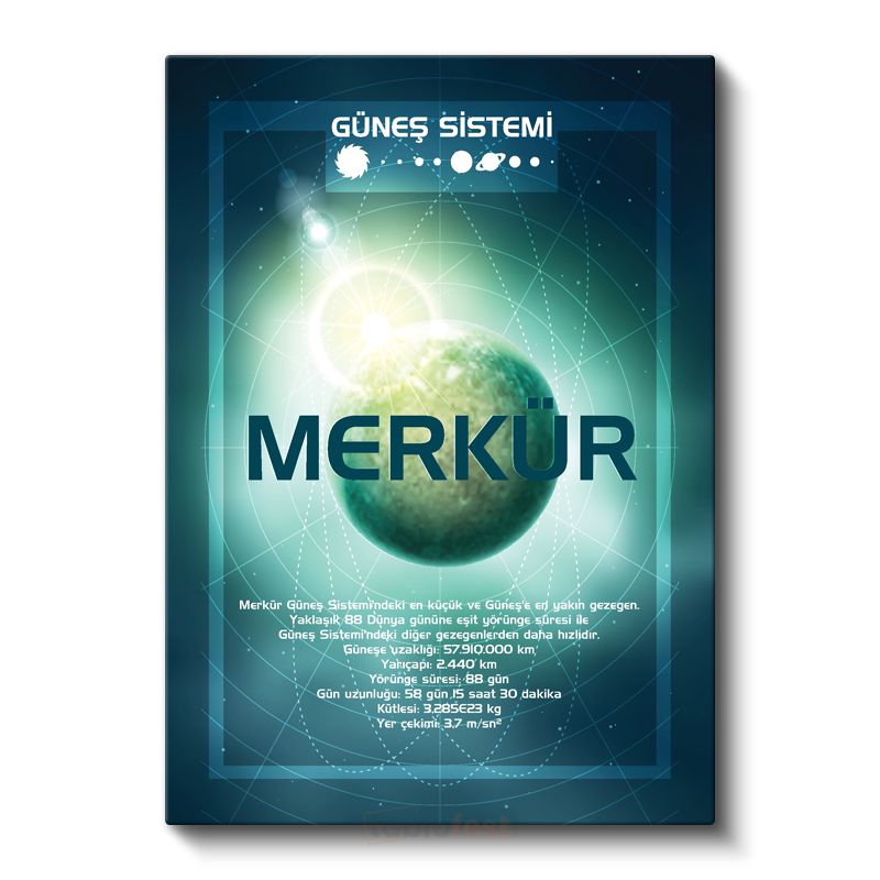 Merkür - Güneş Sistemi Bilgi Tablosu Kanvas Tablo