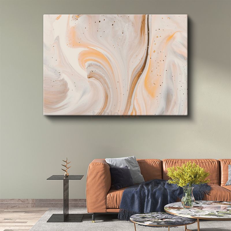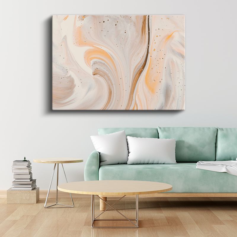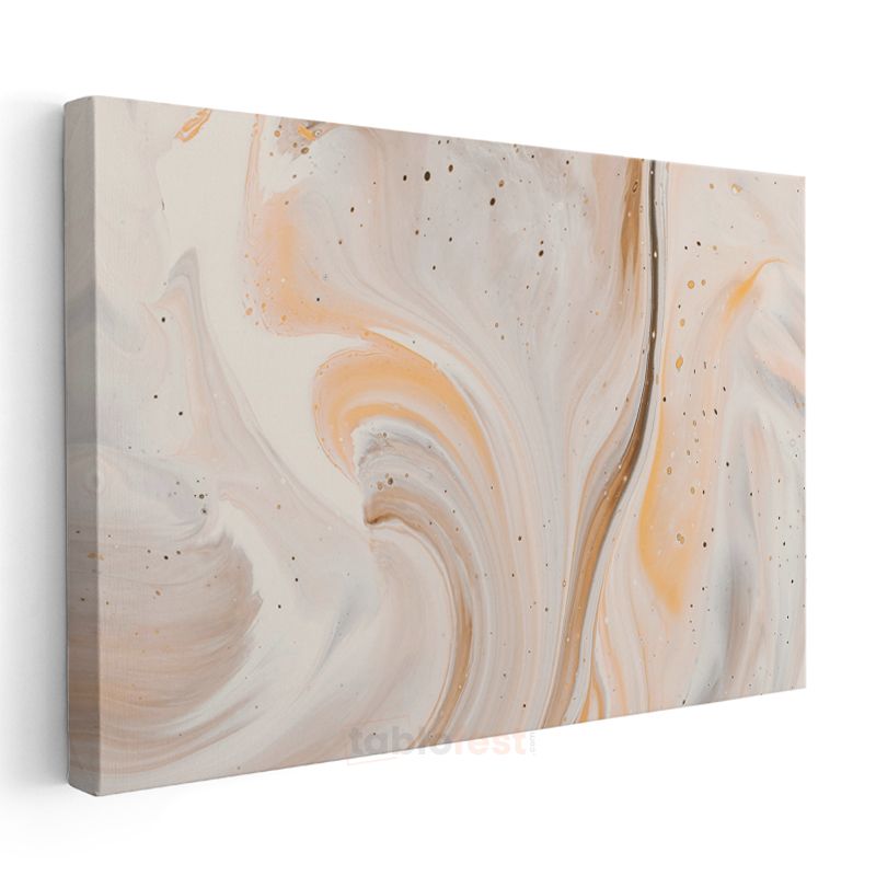 Mermer Akışı - Krem Tonlarında Organik Dalgalar Kanvas Tablo