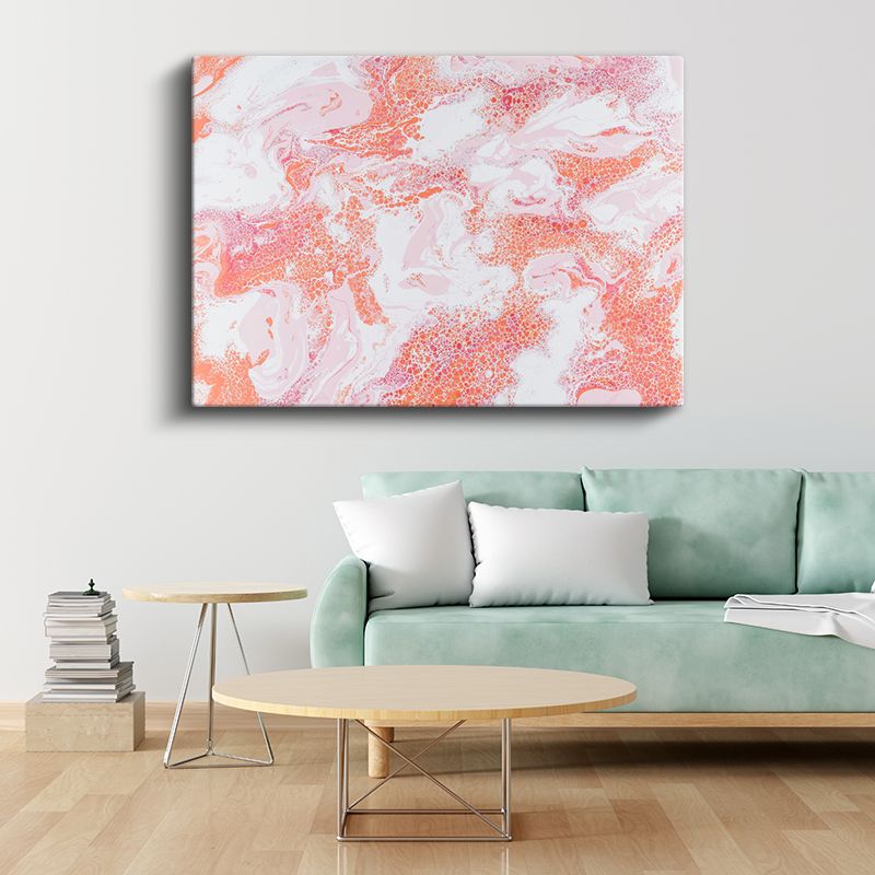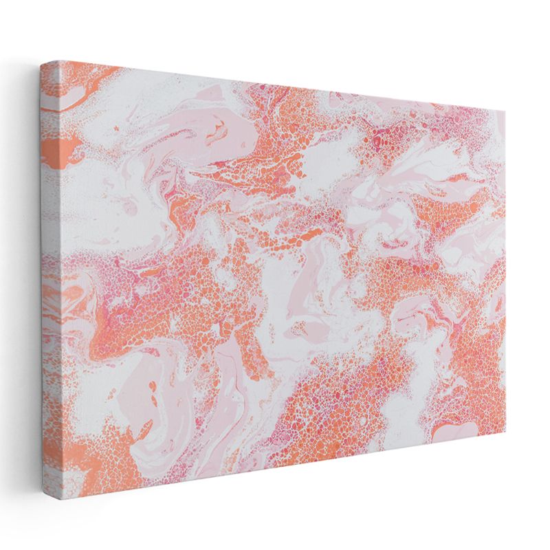 Mermer Akışı - Pembe ve Turuncu Tonlarında Sıvı Efekt Kanvas Tablo