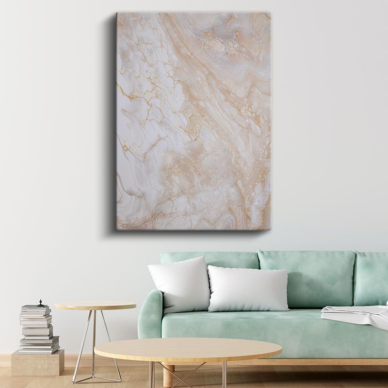 Mermer Akışı - Zarif Bej Tonlarında Sıvı Desen Kanvas Tablo