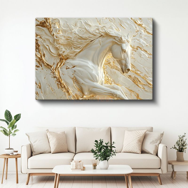 Mermer At - Altın Damarlarla Süslenmiş Heykel Kanvas Tablo