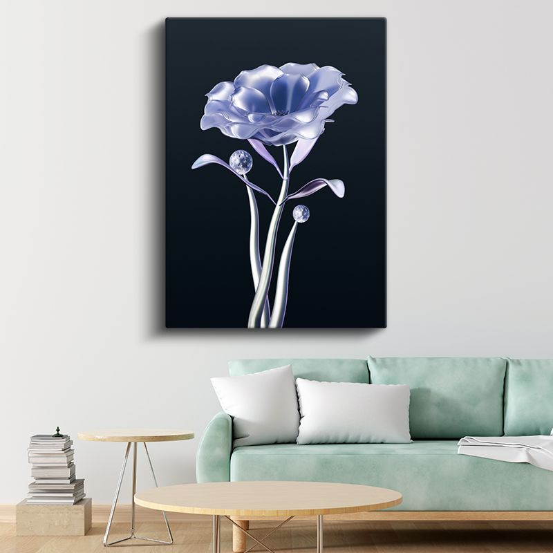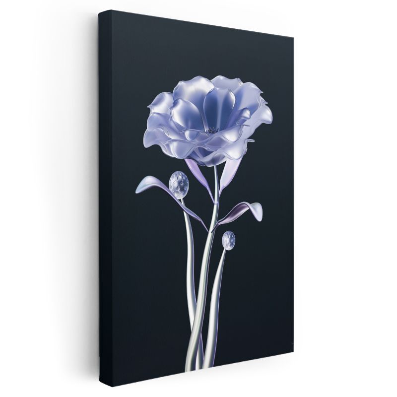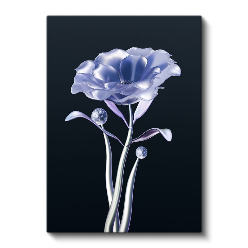 Metalik Çiçek - Zarif Gümüş Tonlarında Dijital Flora Kanvas Tablo