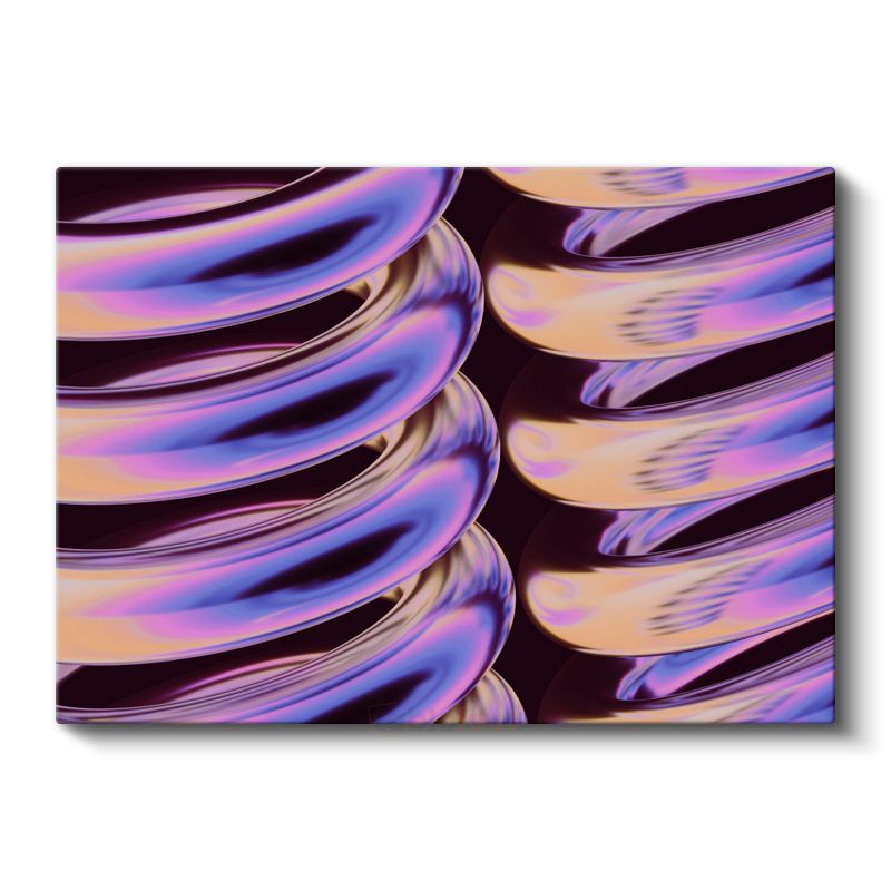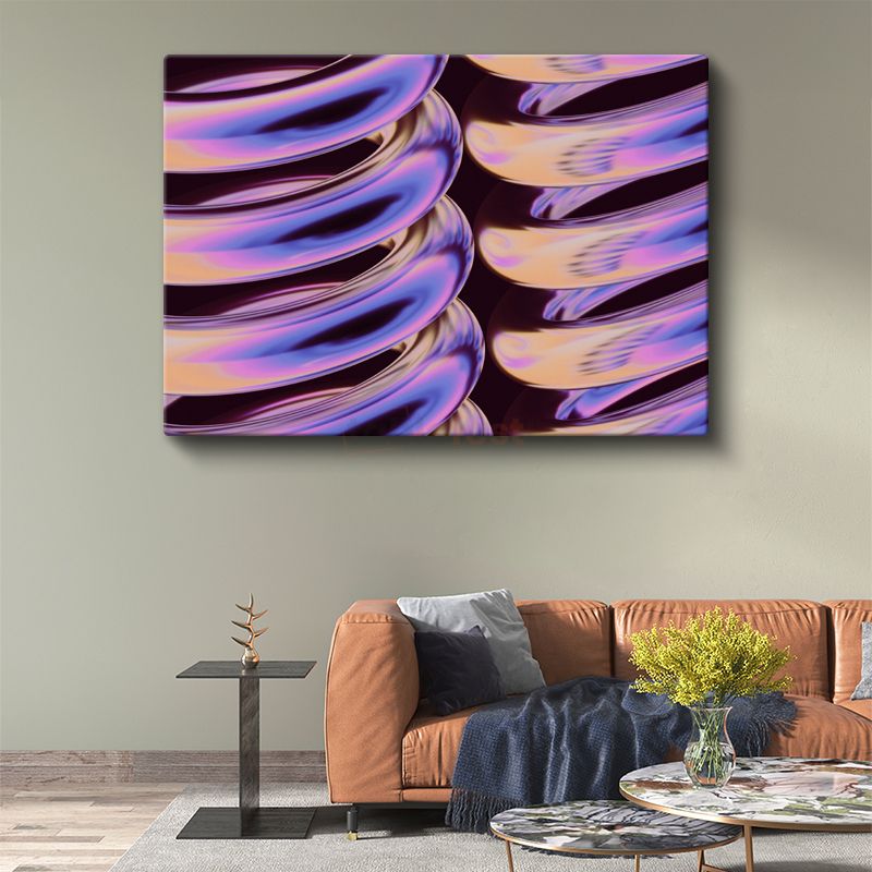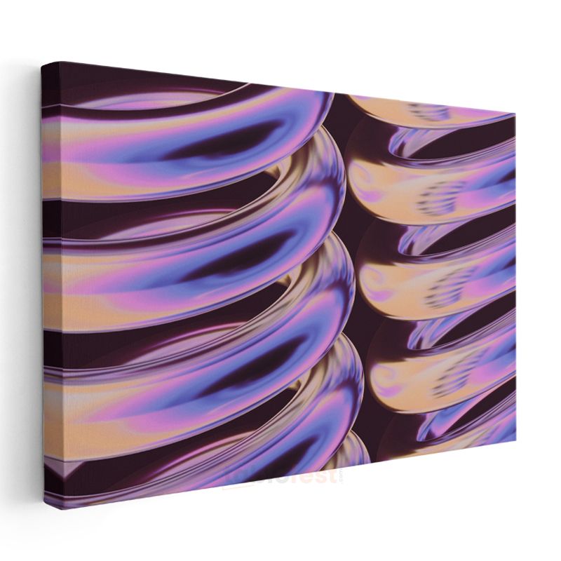 Metalik Dalgalar - Mor Mavi Altın Yansımalı 3D Kanvas Tablo