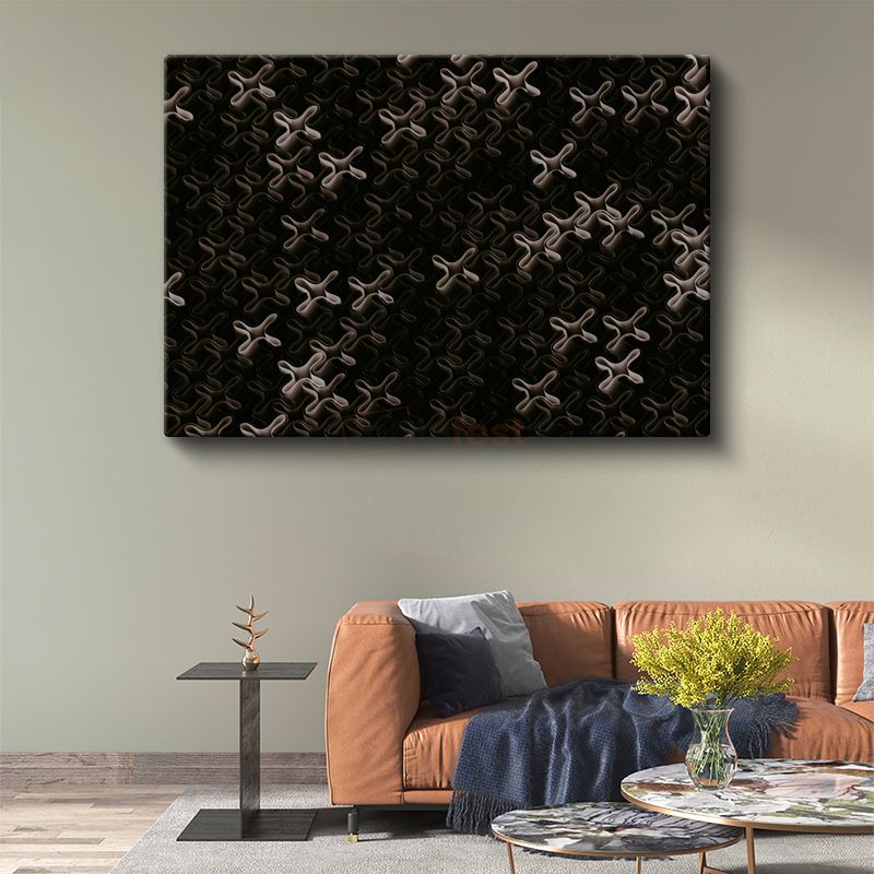 Metalik Desen - Siyah Üzerine Endüstriyel X Formları Kanvas Tablo
