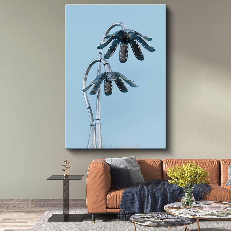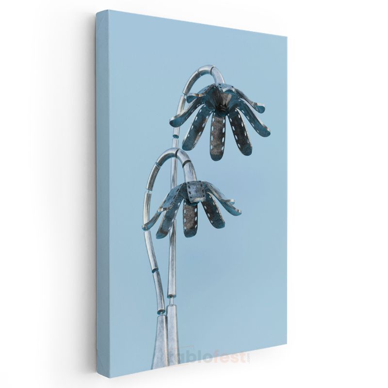 Metalik Flora - Endüstriyel Çiçek Formları Kanvas Tablo