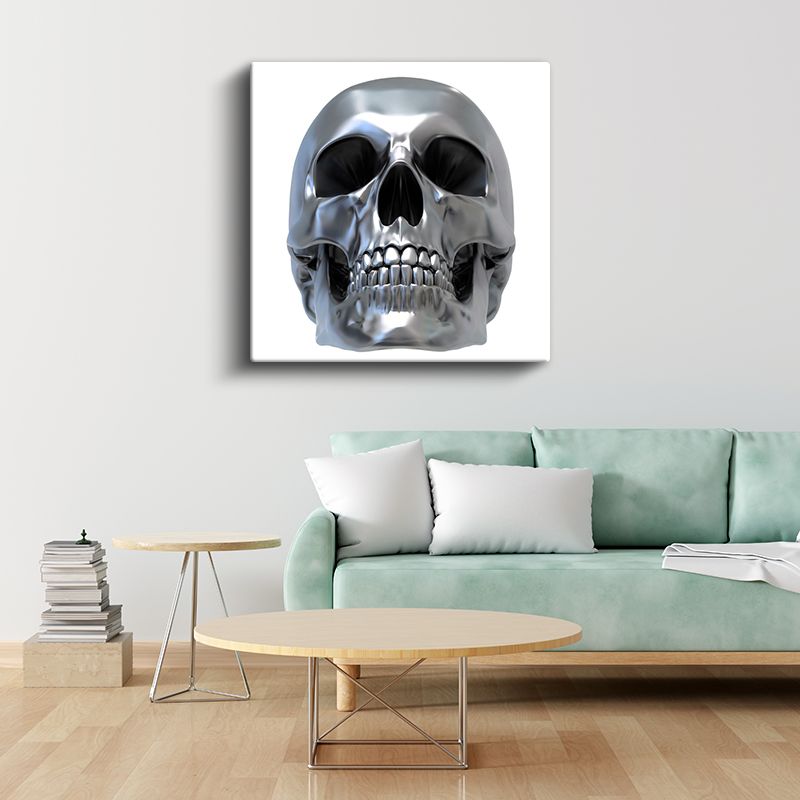 Metalik Kafatası - Modern Sanat Esintili Anatomi Kanvas Tablo