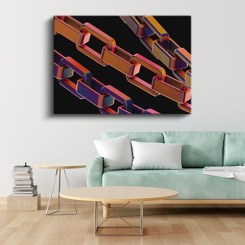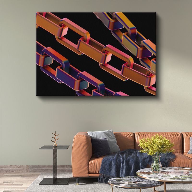 Metalik Zincirler - Geometrik Formlar Vektörel Kanvas Tablo