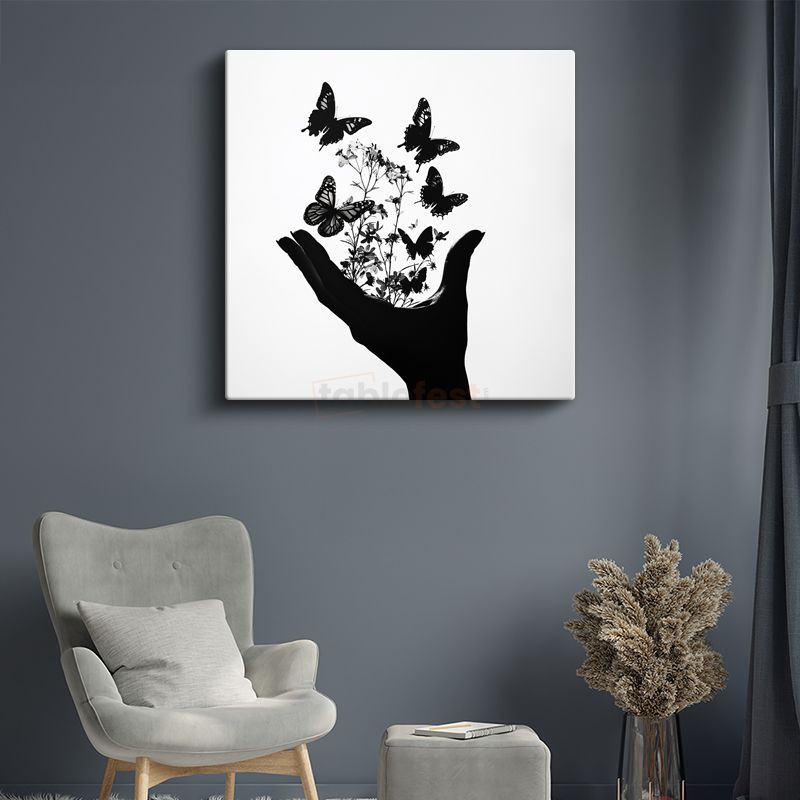 Metamorfoz - Avuçtan Kanat Çırpan Özgürlük Kanvas Tablo