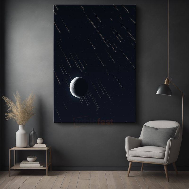 Meteor Yağmuru - Ay Işığı Altında Gökyüzü Kanvas Tablo