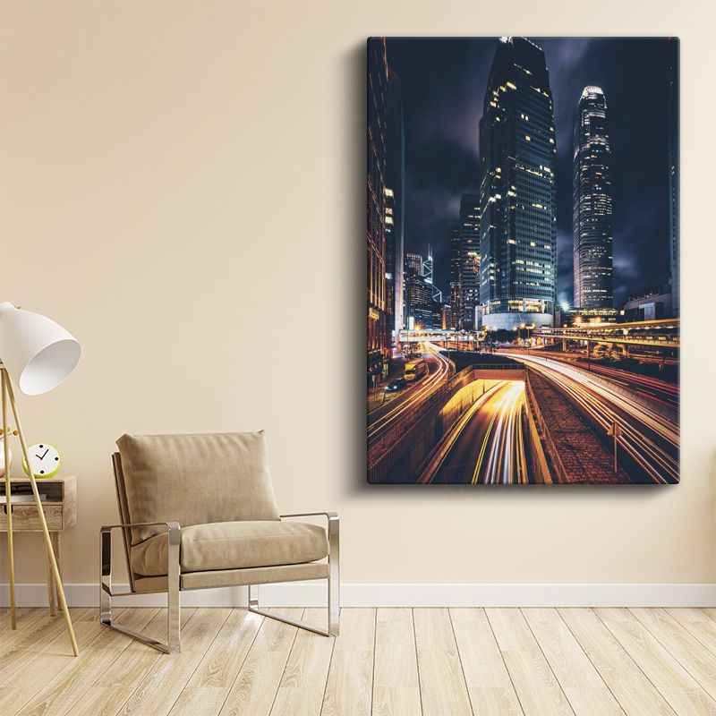 Metropol - Gece Işıkları ve Gökdelenler Kanvas Tablo