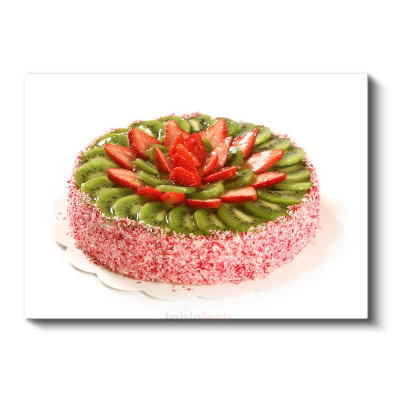 Meyve Şöleni - Çilek ve Kivi Dilimleriyle Süslenmiş Pasta Kanvas Tablo