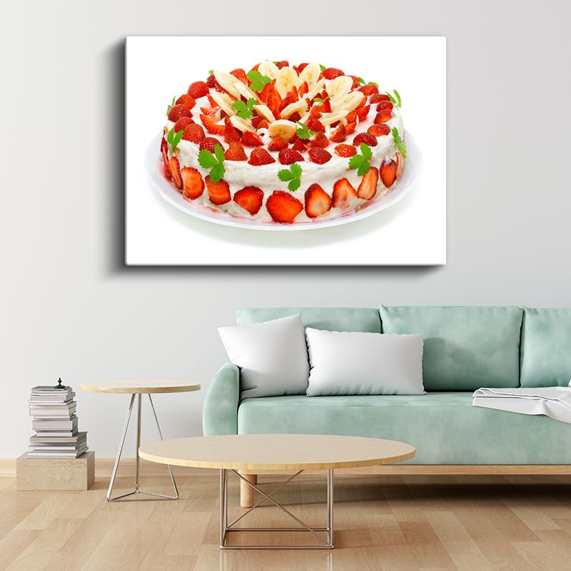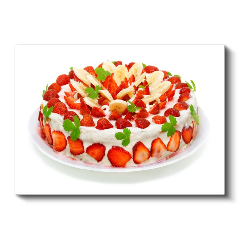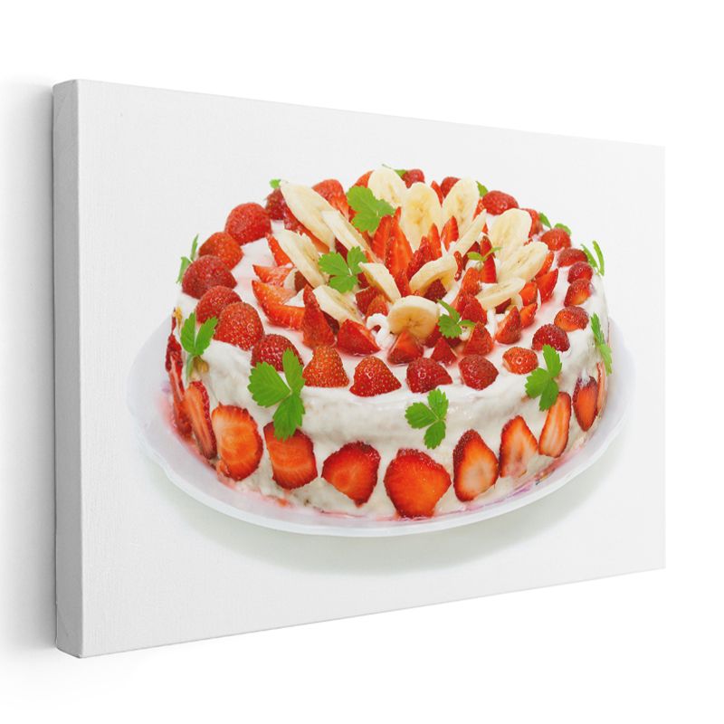 Meyveli Pasta - Çilek ve Muz Süslemeli Kanvas Tablo