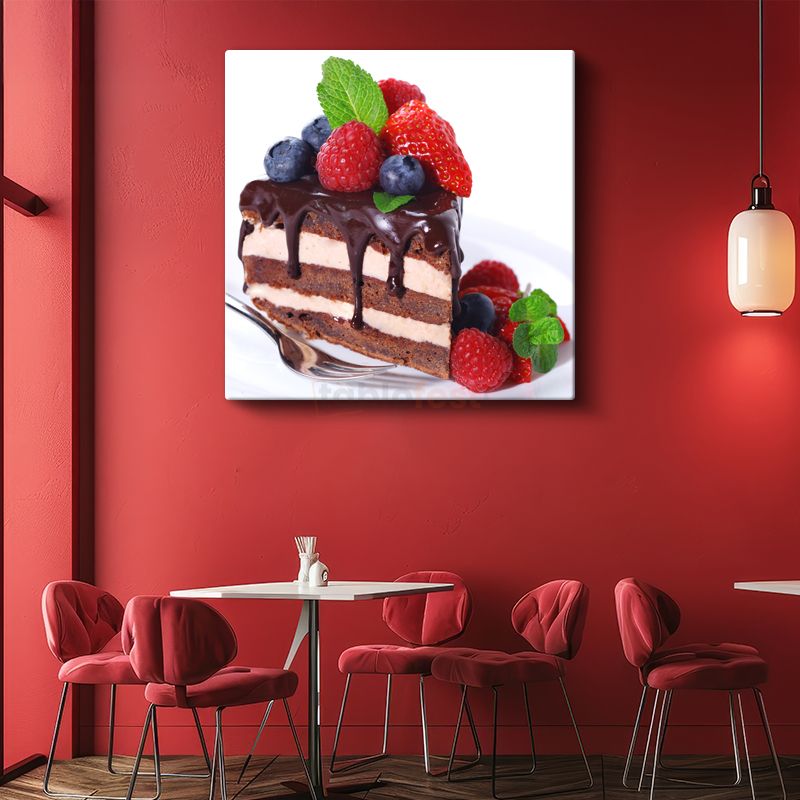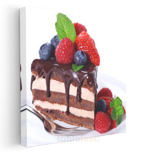 Meyveli Pasta Dilimi - Çikolata Soslu Tatlı Ziyafet Kanvas Tablo