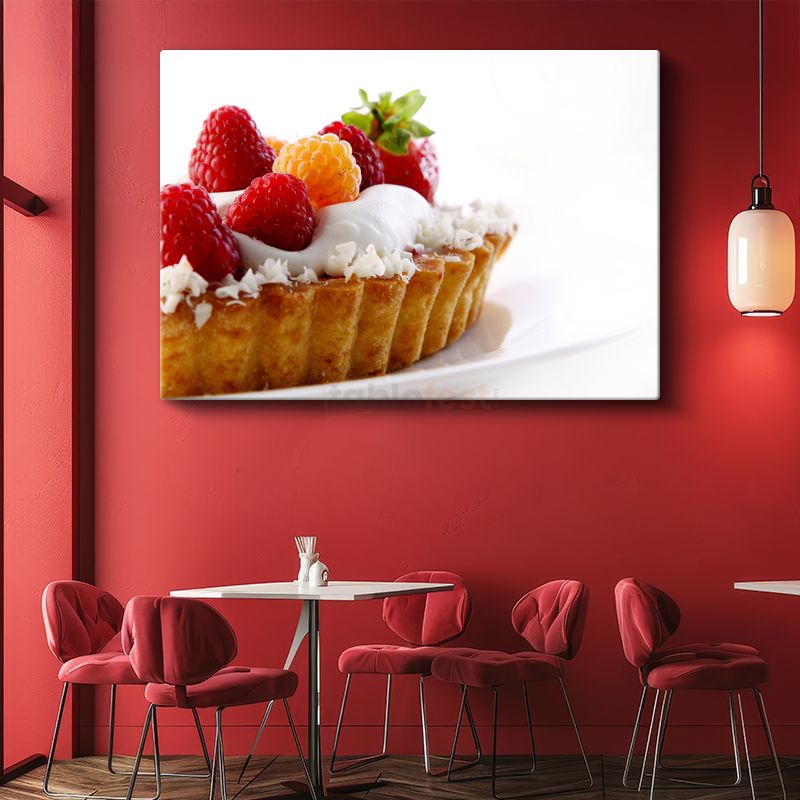 Meyveli Tart - Taze Ahududu ve Çilek ile Bezeli Kanvas Tablo