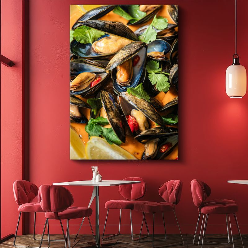 Midye Şöleni - Taze Deniz Mahsulü Kanvas Tablo