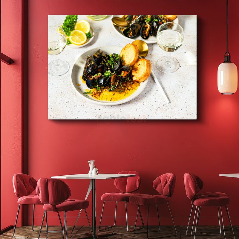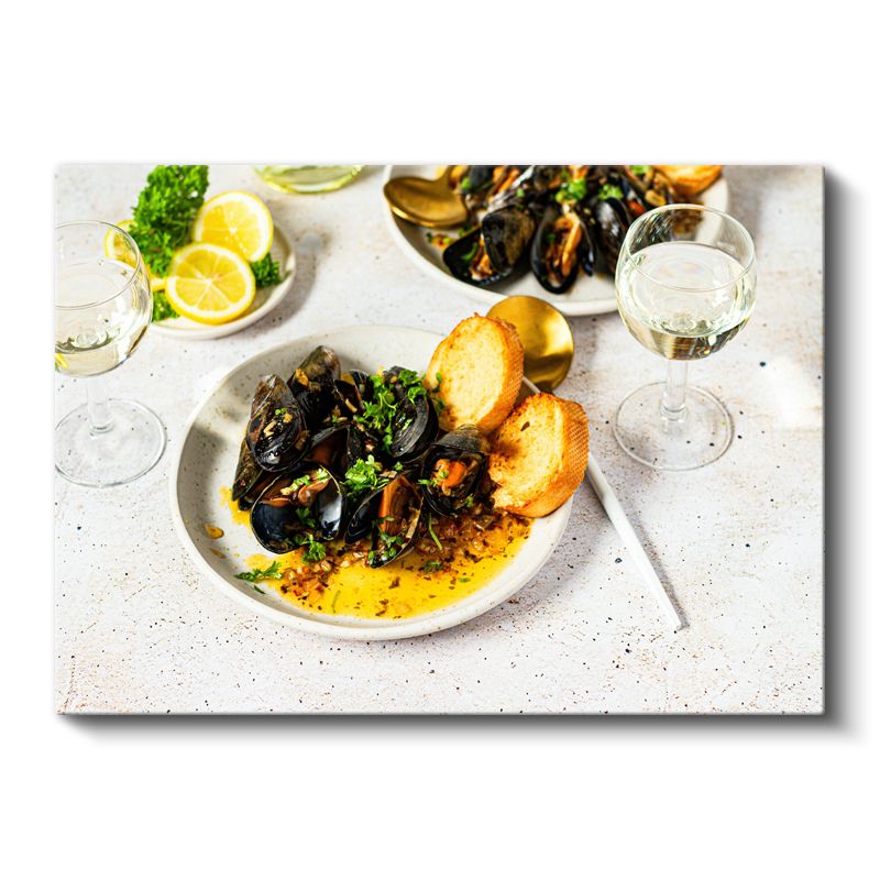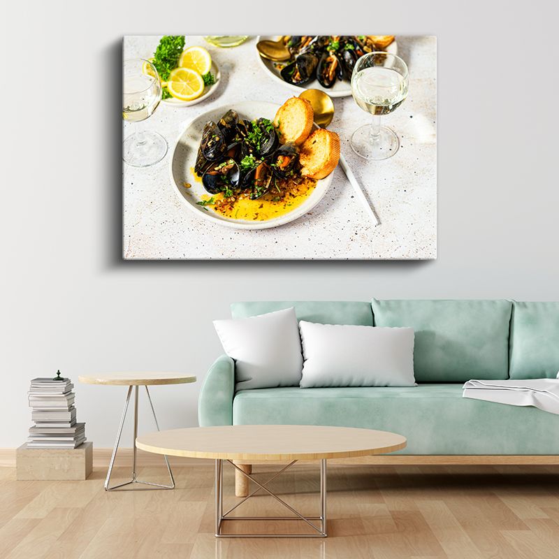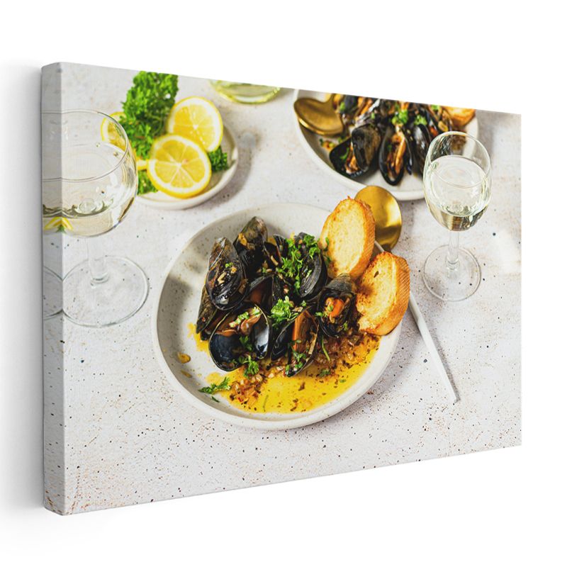 Midye Ziyafeti - Şarap Eşliğinde Deniz Mahsulleri Kanvas Tablo