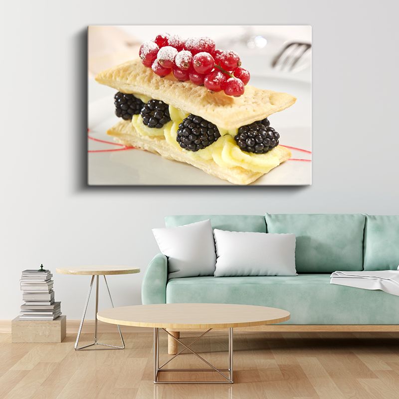 Milföy Tatlısı - Böğürtlen ve Kırmızı Meyvelerle Süslenmiş Kanvas Tablo