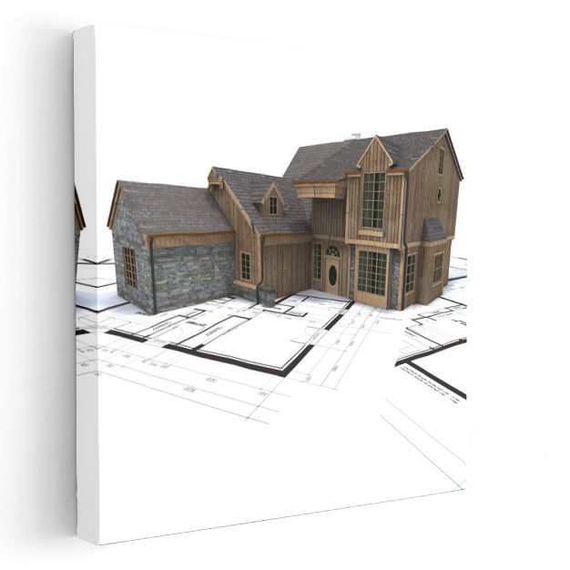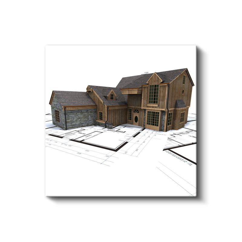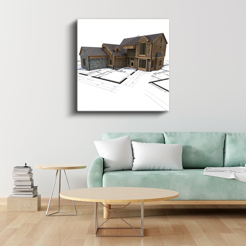 Mimar - Ahşap Detaylı Lüks Konut Tasarımı Kanvas Tablo