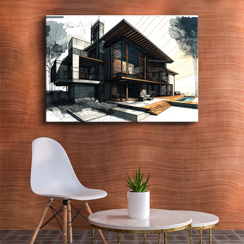 Mimar - Çağdaş Konut Konsept Çizimi Kanvas Tablo