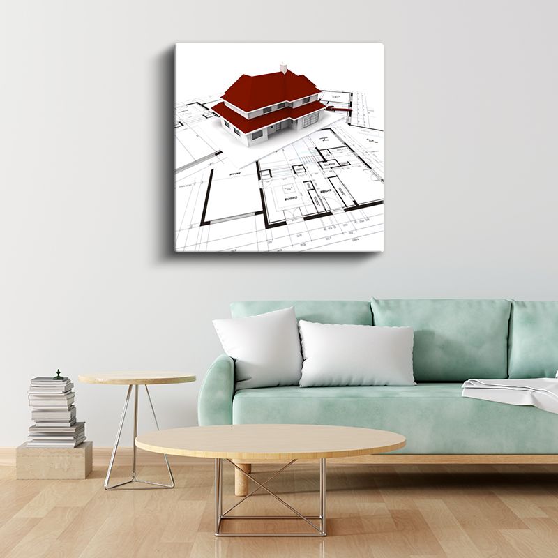 Mimar - Kırmızı Çatılı Villa Projesi Kanvas Tablo