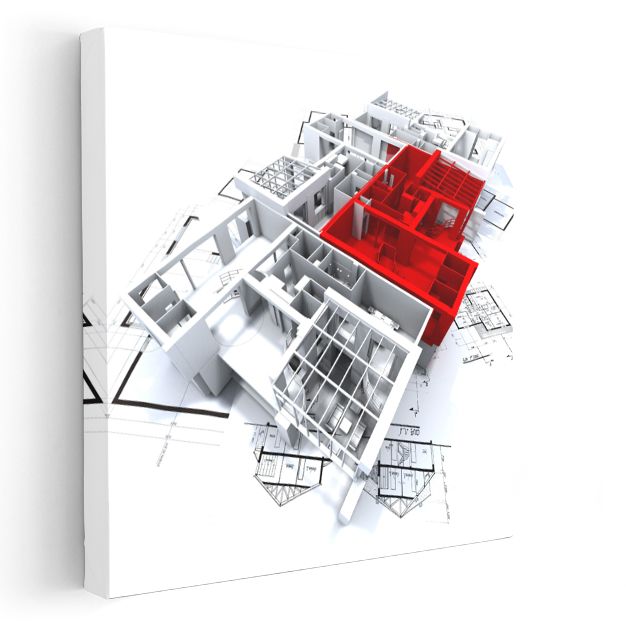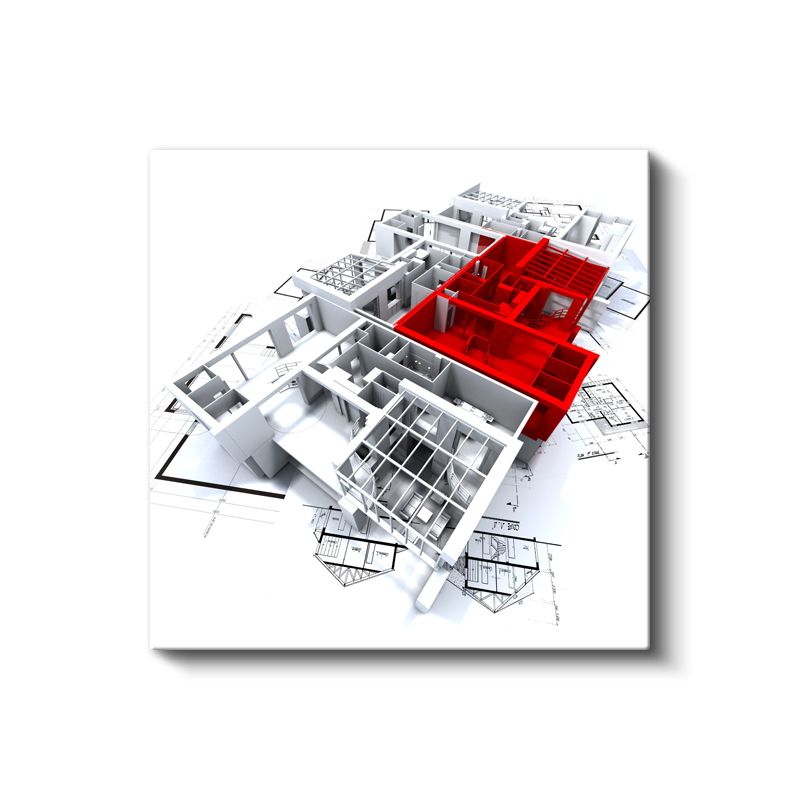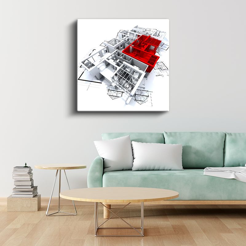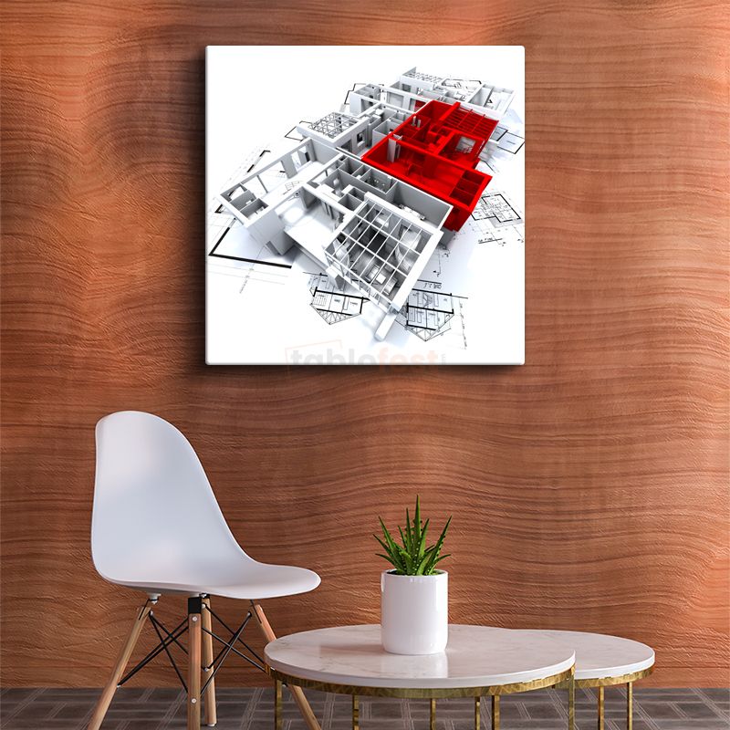 Mimar - Kırmızı Vurgulu Proje Tasarımı Kanvas Tablo