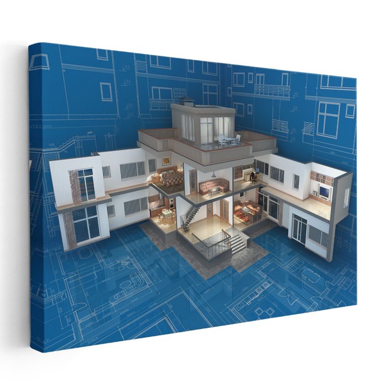 Mimar - Lüks Villa Kesiti Kanvas Tablo