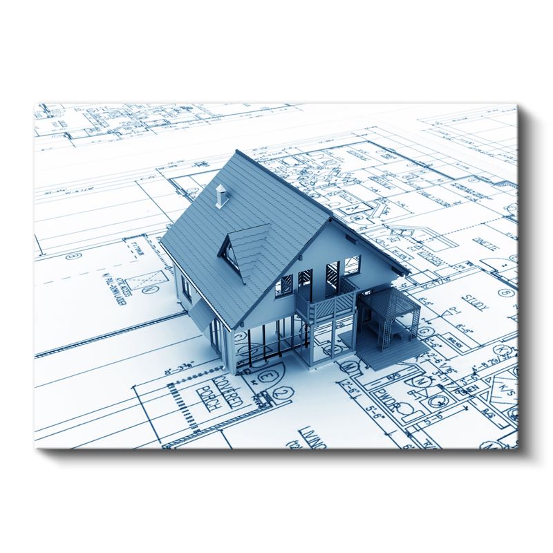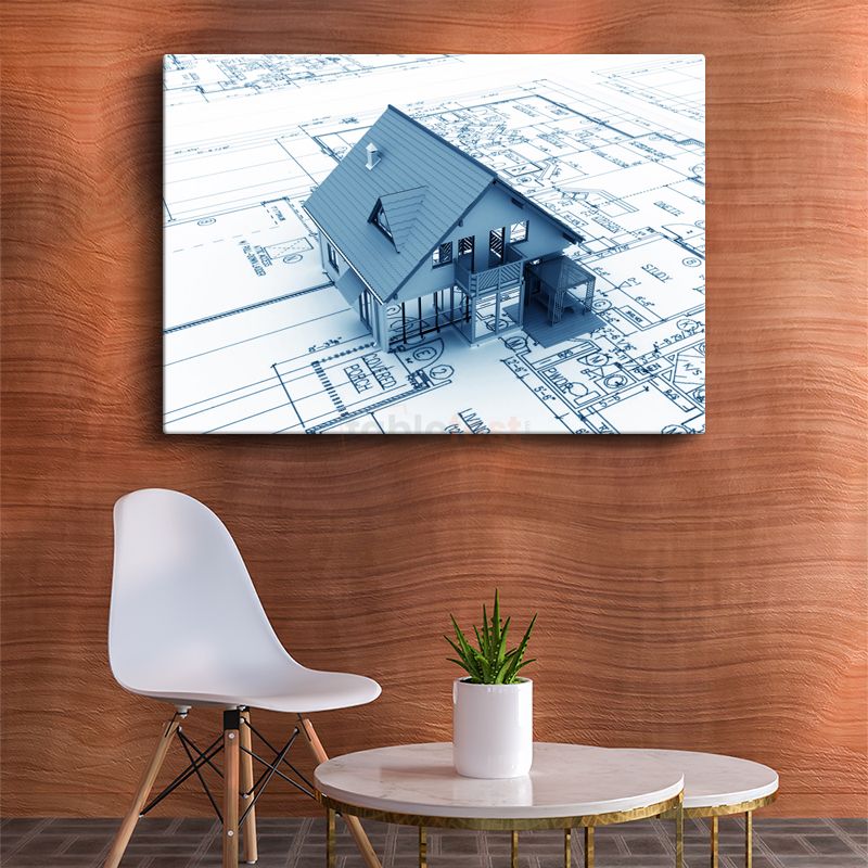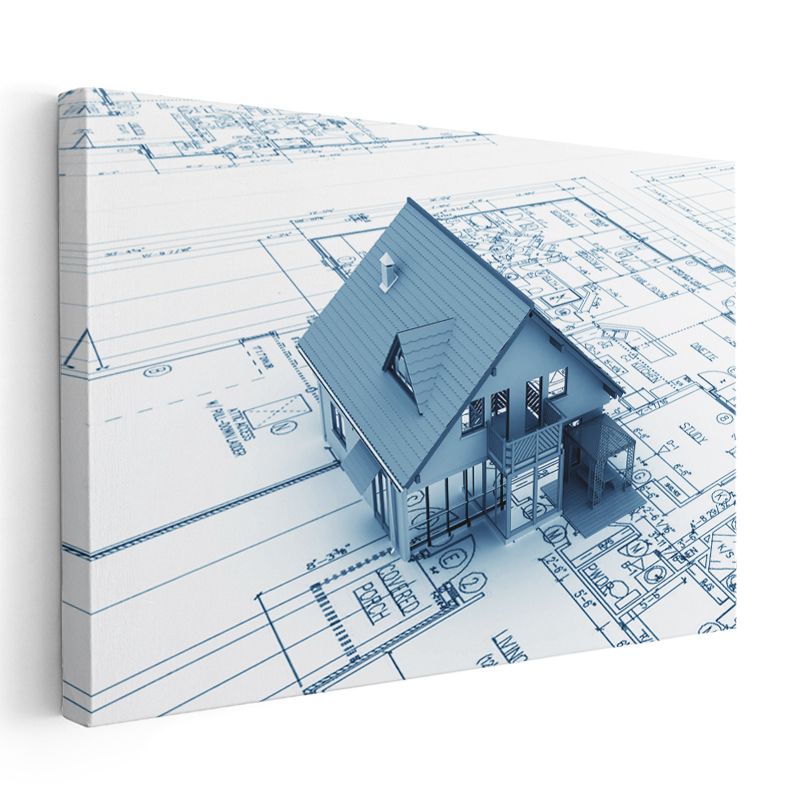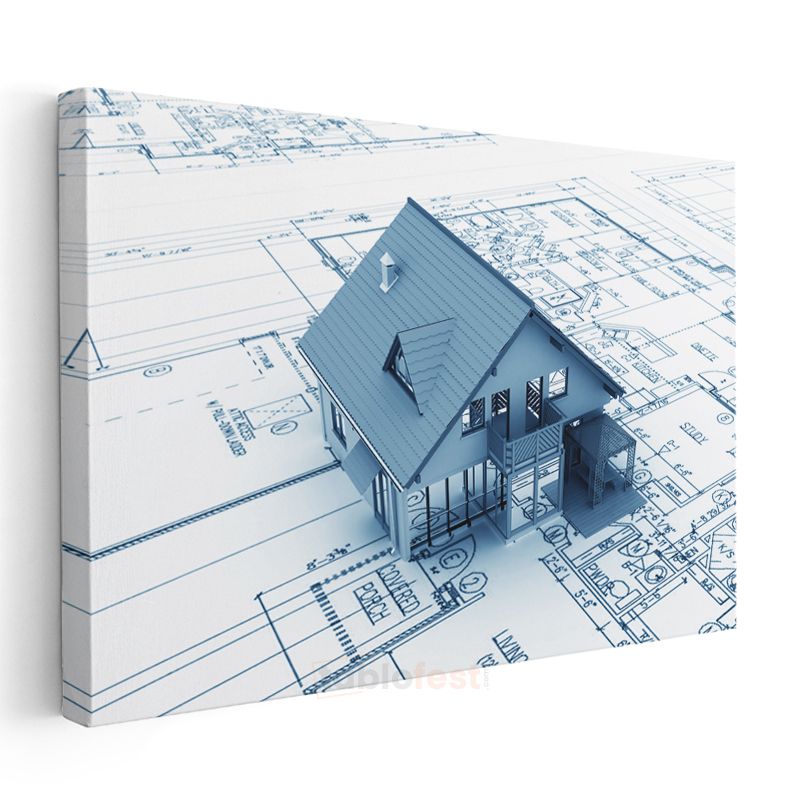 Mimar - Mavi Ev Proje Çizimi Kanvas Tablo