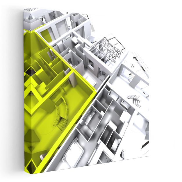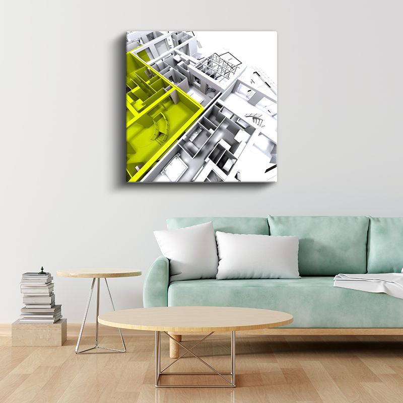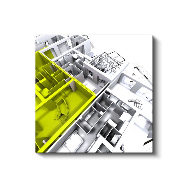 Mimar - Mavi Vurgulu Mimari Plan Kanvas Tablo