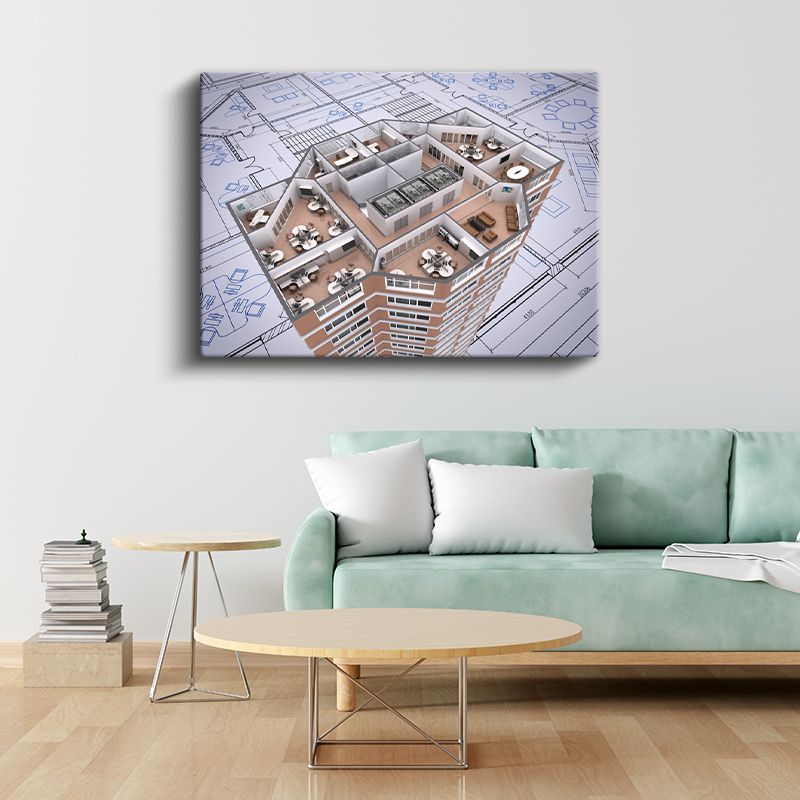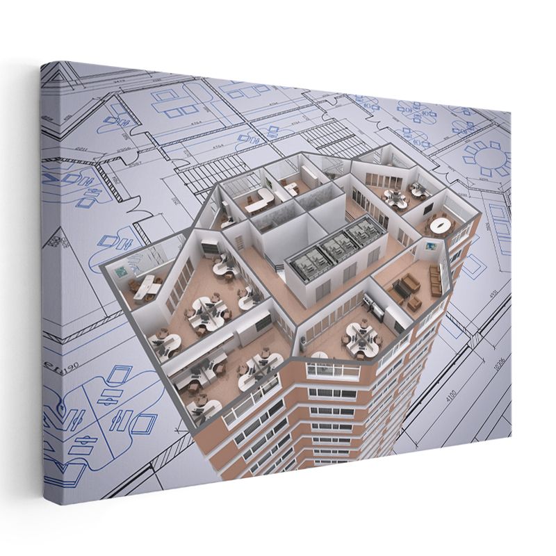 Mimar - Ofis Katı Yerleşim Planı Kanvas Tablo