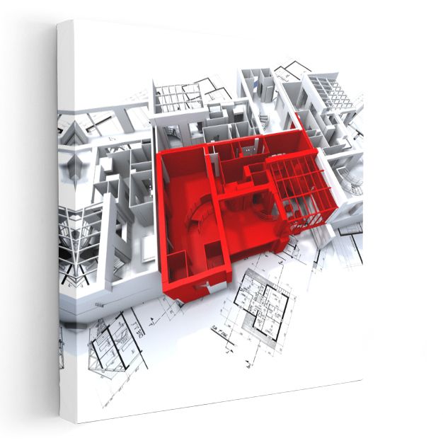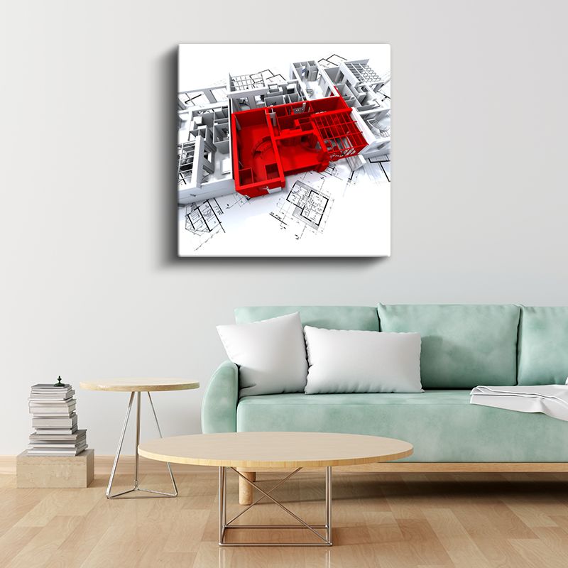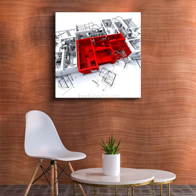Mimar - Sarı Vurgulu Bina Tasarımı Kanvas Tablo