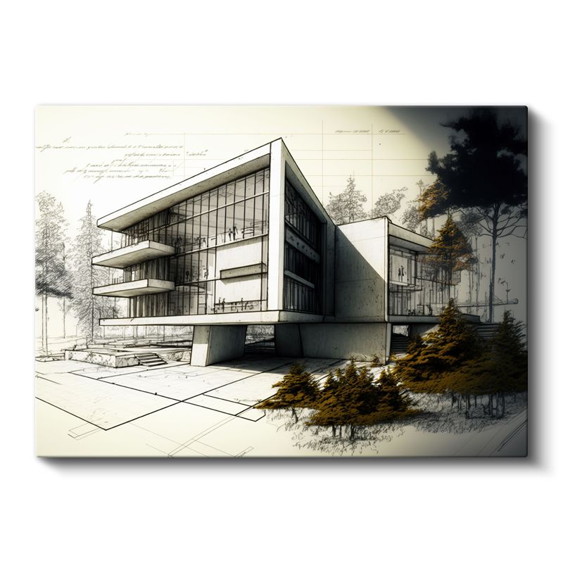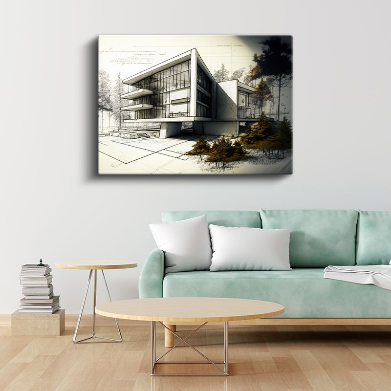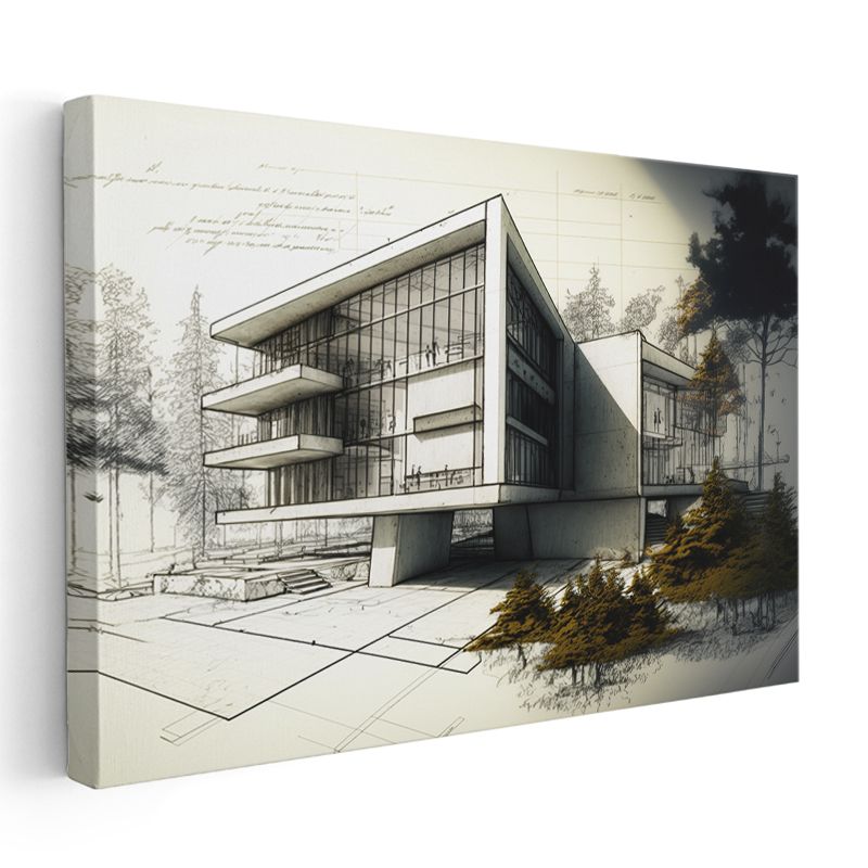 Mimar - Şık Ofis Binası Çizimi Kanvas Tablo