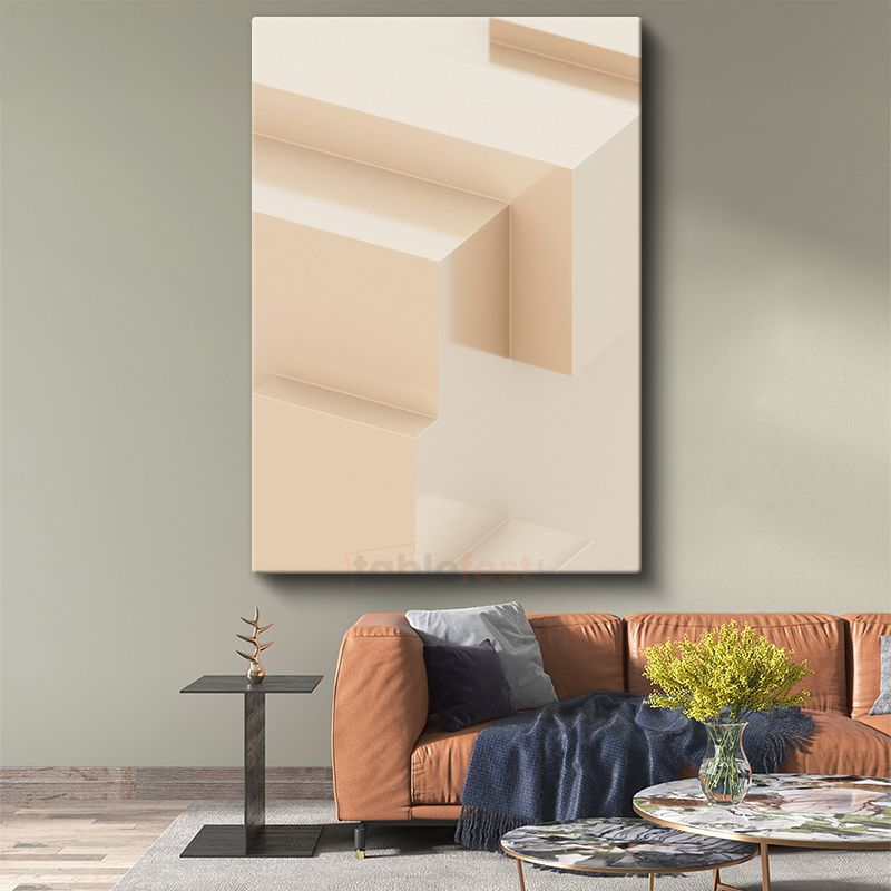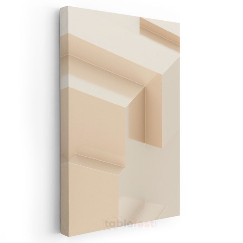Mimari Sadelik - Geometrik Bej Katmanlar Kanvas Tablo