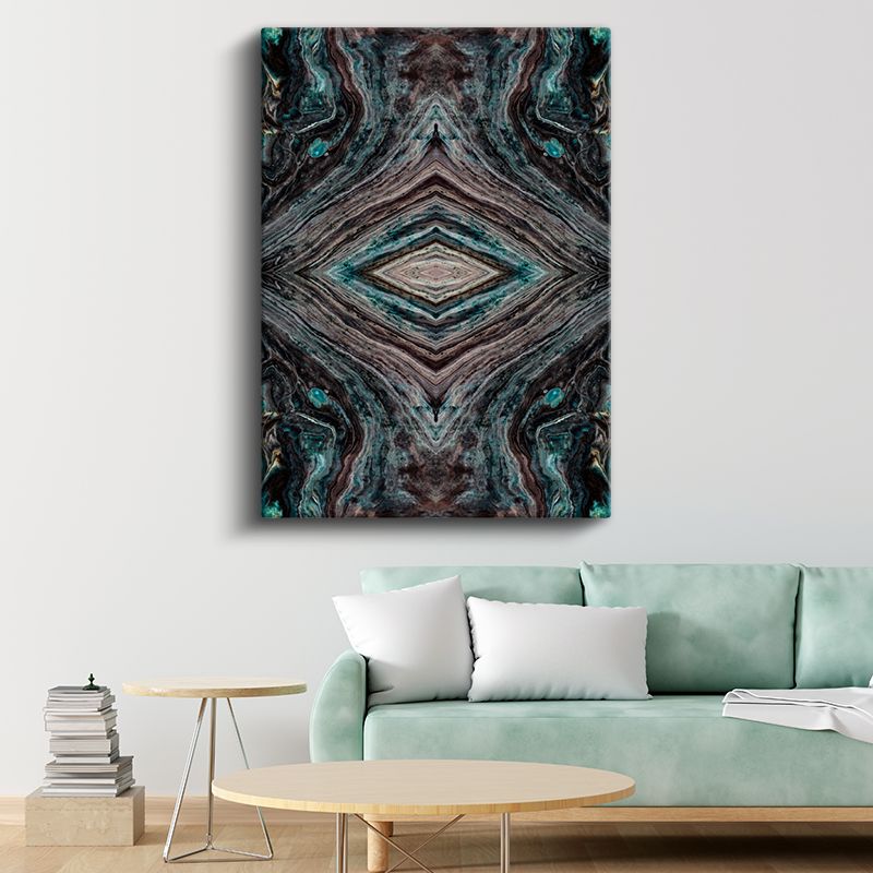 Mineral Simetrisi - Turkuaz ve Kahve Tonlarında Geometrik Desen Kanvas Tablo