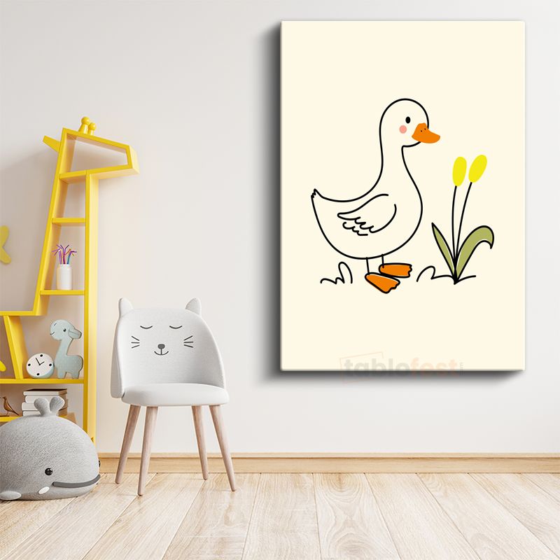 Minik Ördek - Bahar Çiçekleriyle Dostluk Kanvas Tablo