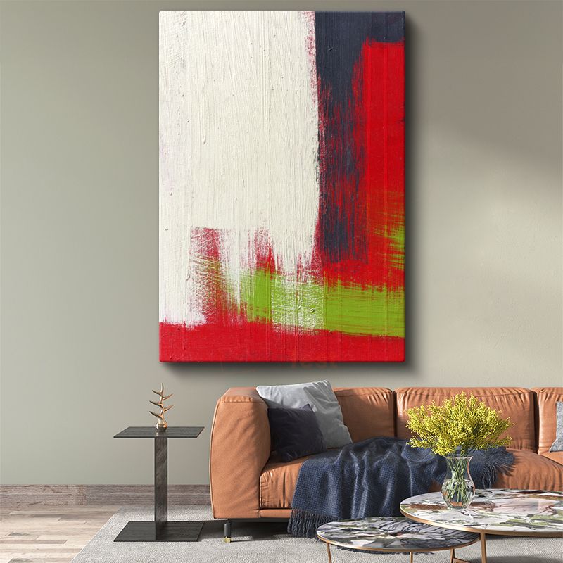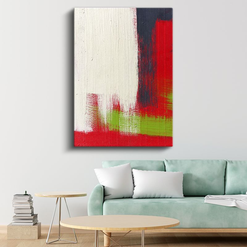 Minimal Kontrast - Kırmızı Beyaz Yeşil Soyut Kompozisyon Kanvas Tablo