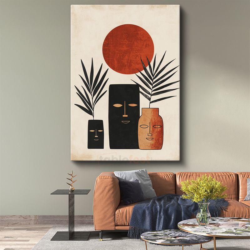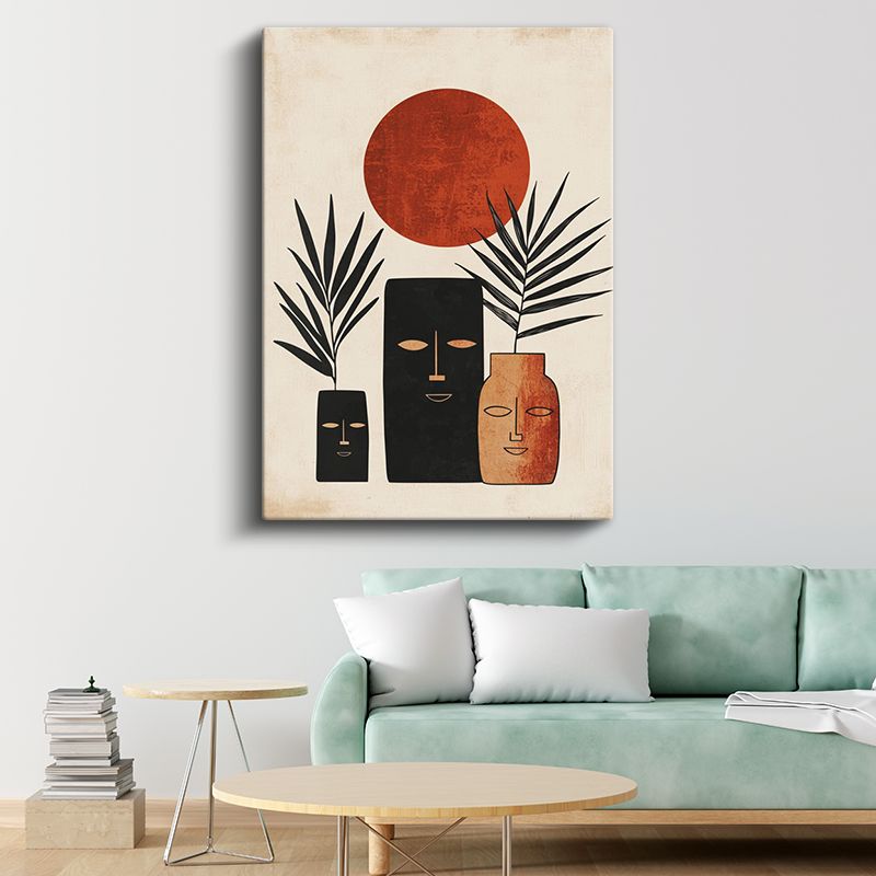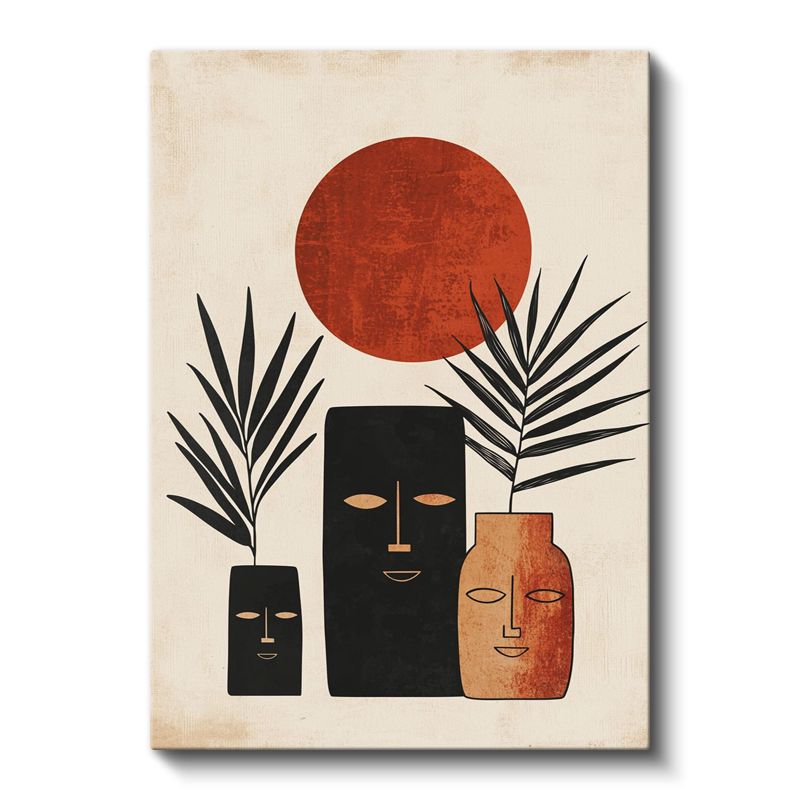 Minimal Maskeler - Kızıl Güneş Altında Soyut Portreler Kanvas Tablo