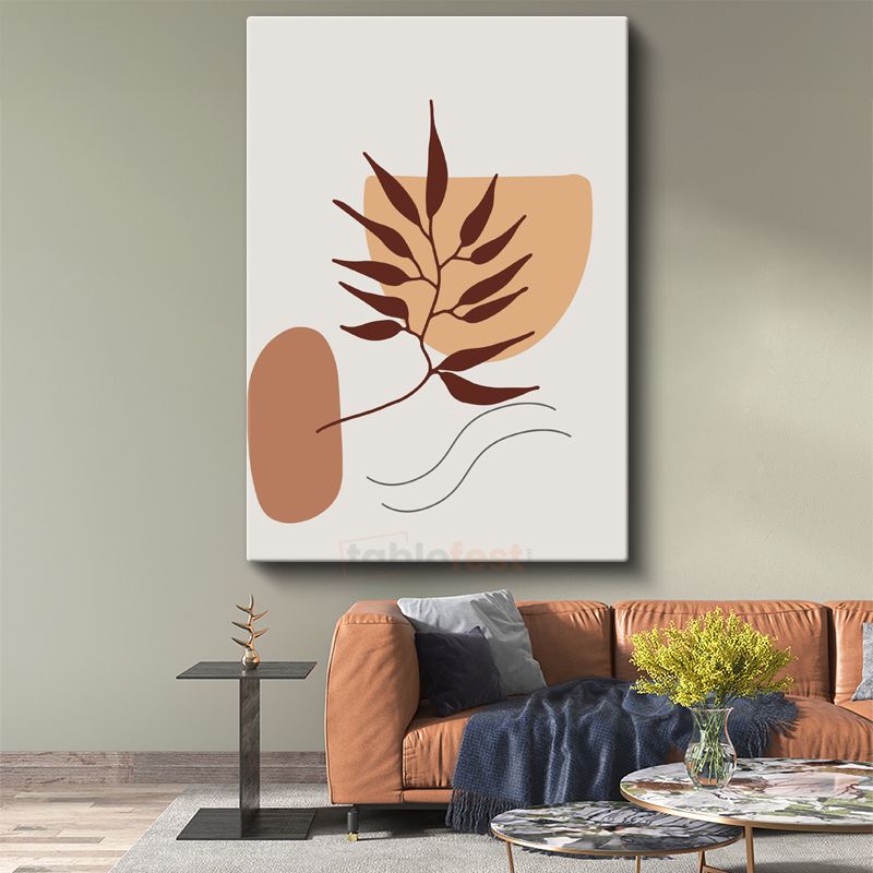 Minimal Yaprak - Geometrik Botanik Kompozisyon Kanvas Tablo