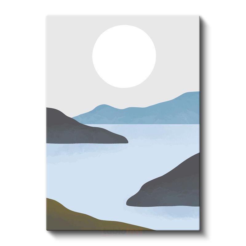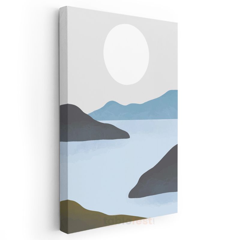 Minimalist Ay - Mavi Dağlar ve Sakin Sular Soyut Kanvas Tablo