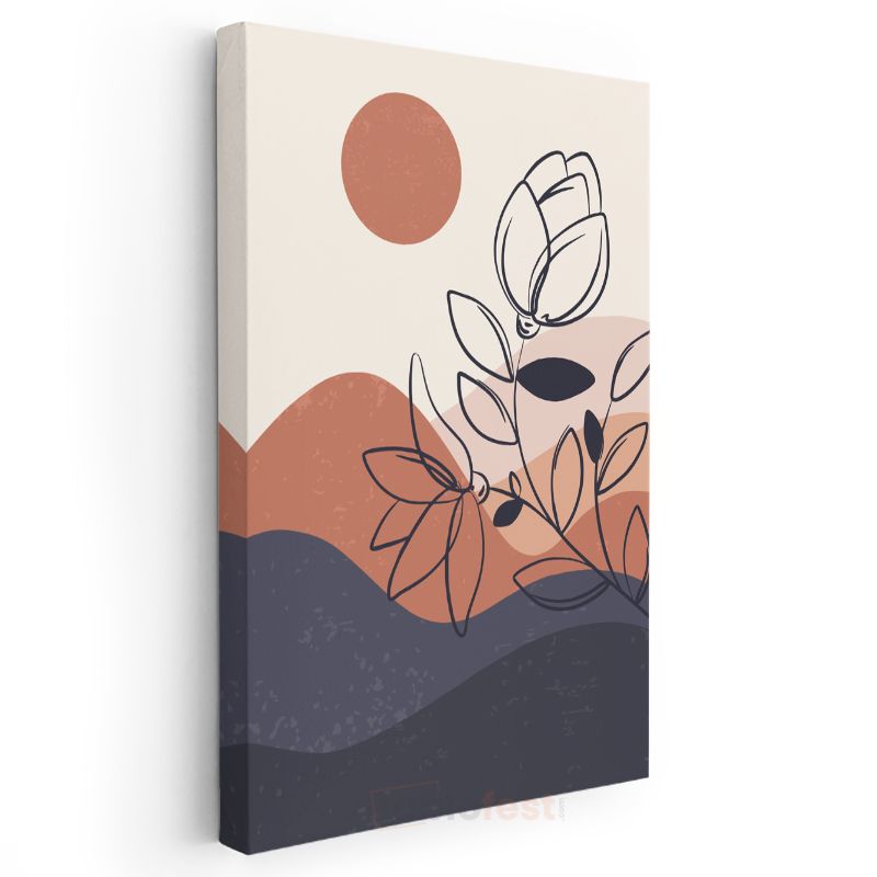 Minimalist Çiçek - Tek Çizgi Sanatıyla Soyut Botanik Kanvas Tablo